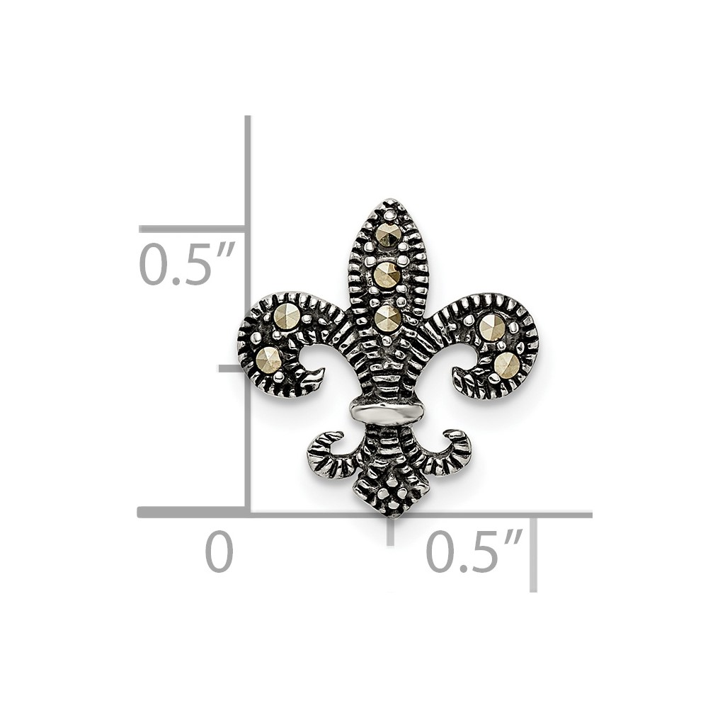 Sterling Silver Antiqued Marcasite Fleur de Lis Chain Slide