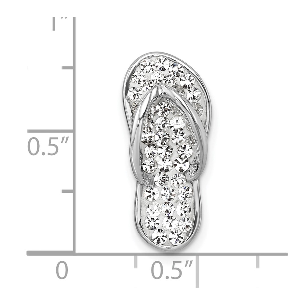 Sterling Silver Rhodium-plated Polished White Crystal Flip Flop Chain Slide
