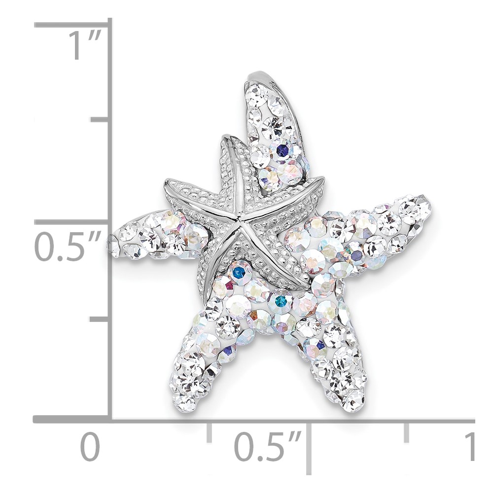 Sterling Silver Rhodium-plated Polished White Crystal Starfish Pendant Chain Slide
