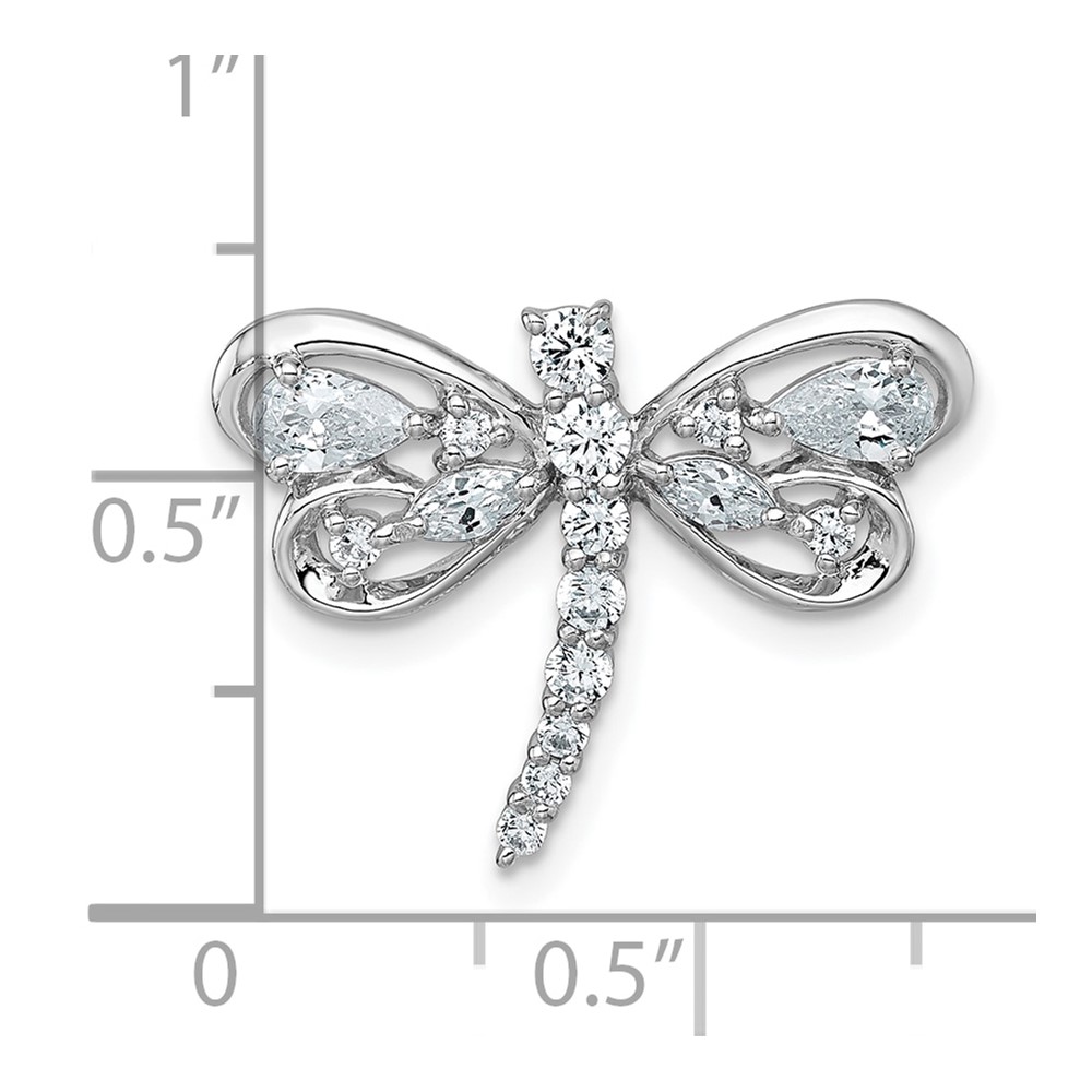 Sterling Silver Rhodium-plated Polished CZ Dragonfly Chain Slide Pendant