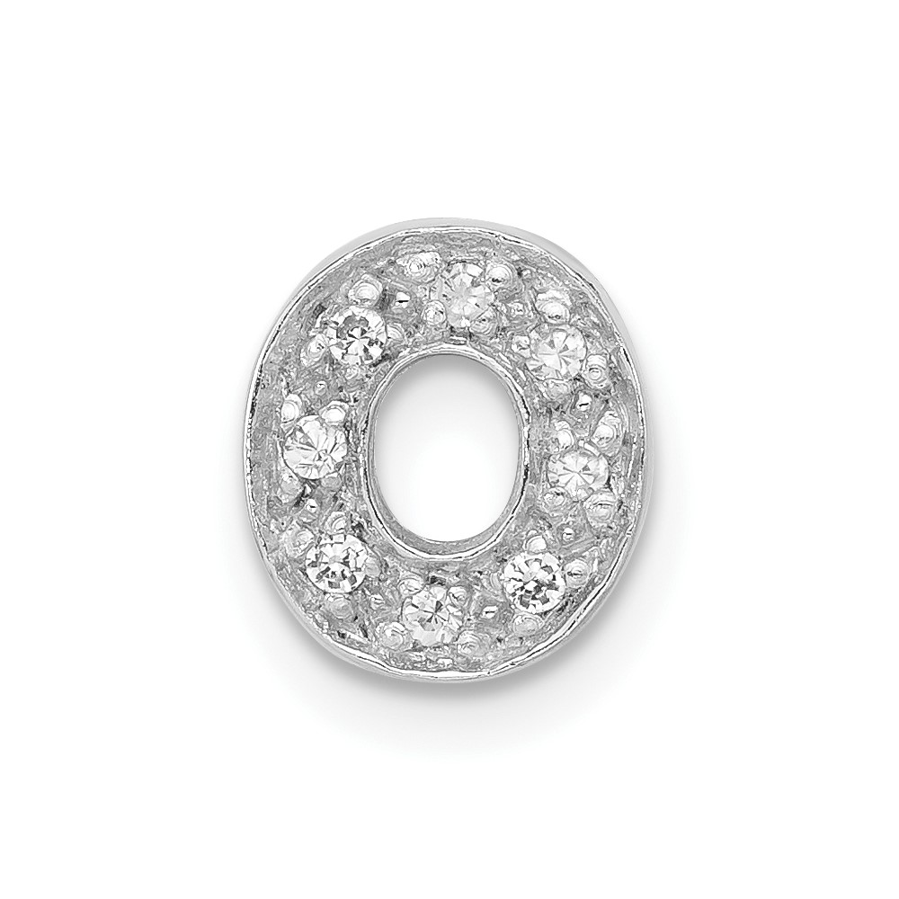 Sterling Silver Polished CZ Initial O Chain Slide Charm