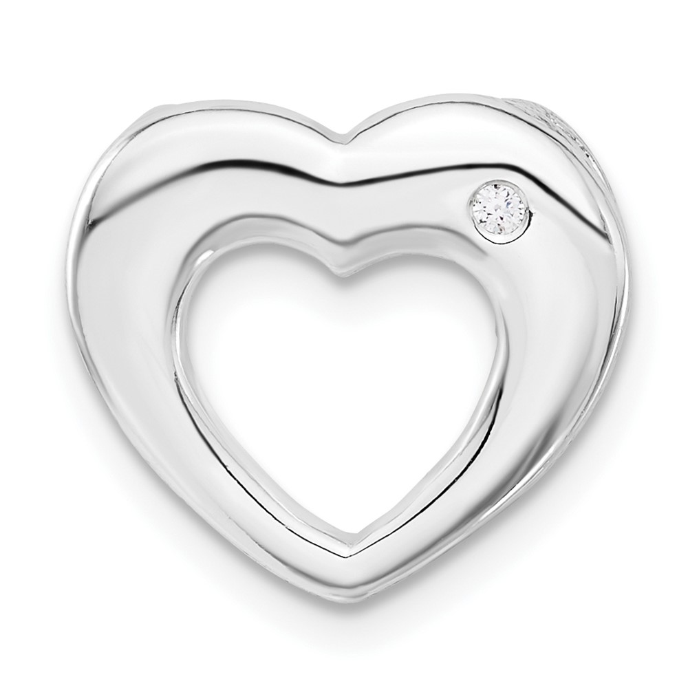 Sterling Silver Polished Heart w/ CZ Slide Pendant