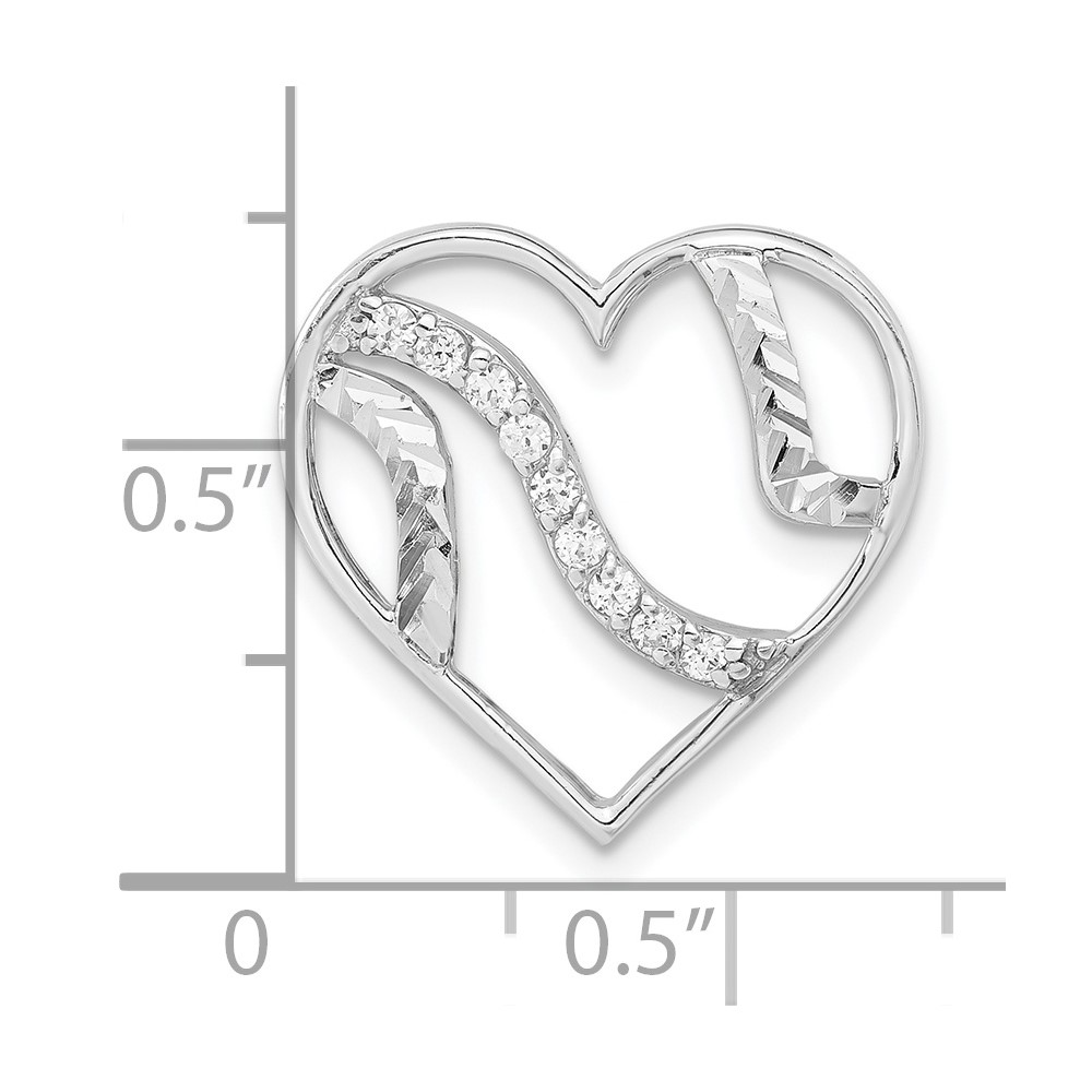 Sterling Silver Polished & Diamond-cut CZ Heart Slide Pendant