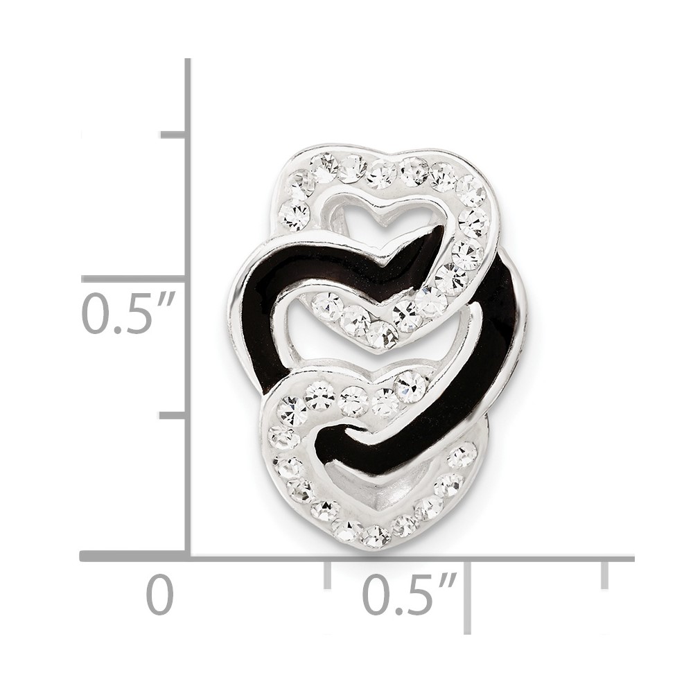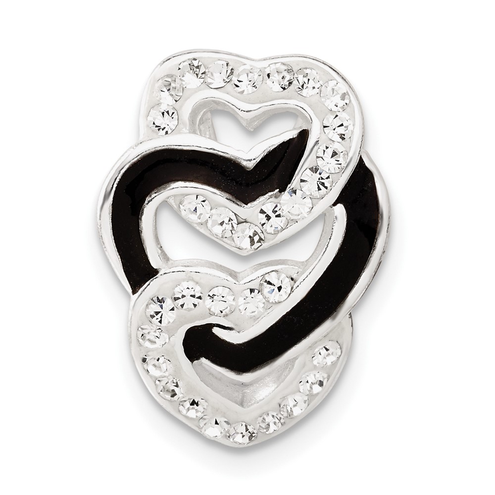Sterling Silver Enameled Stellux Crystal Triple Heart Slide