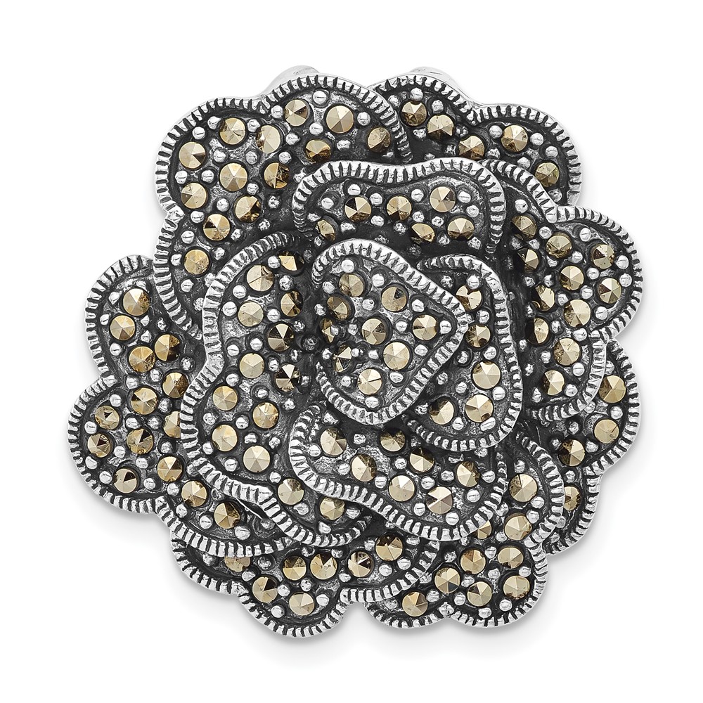 Sterling Silver Antiqued Marcasite Flower Chain Slide Pendant