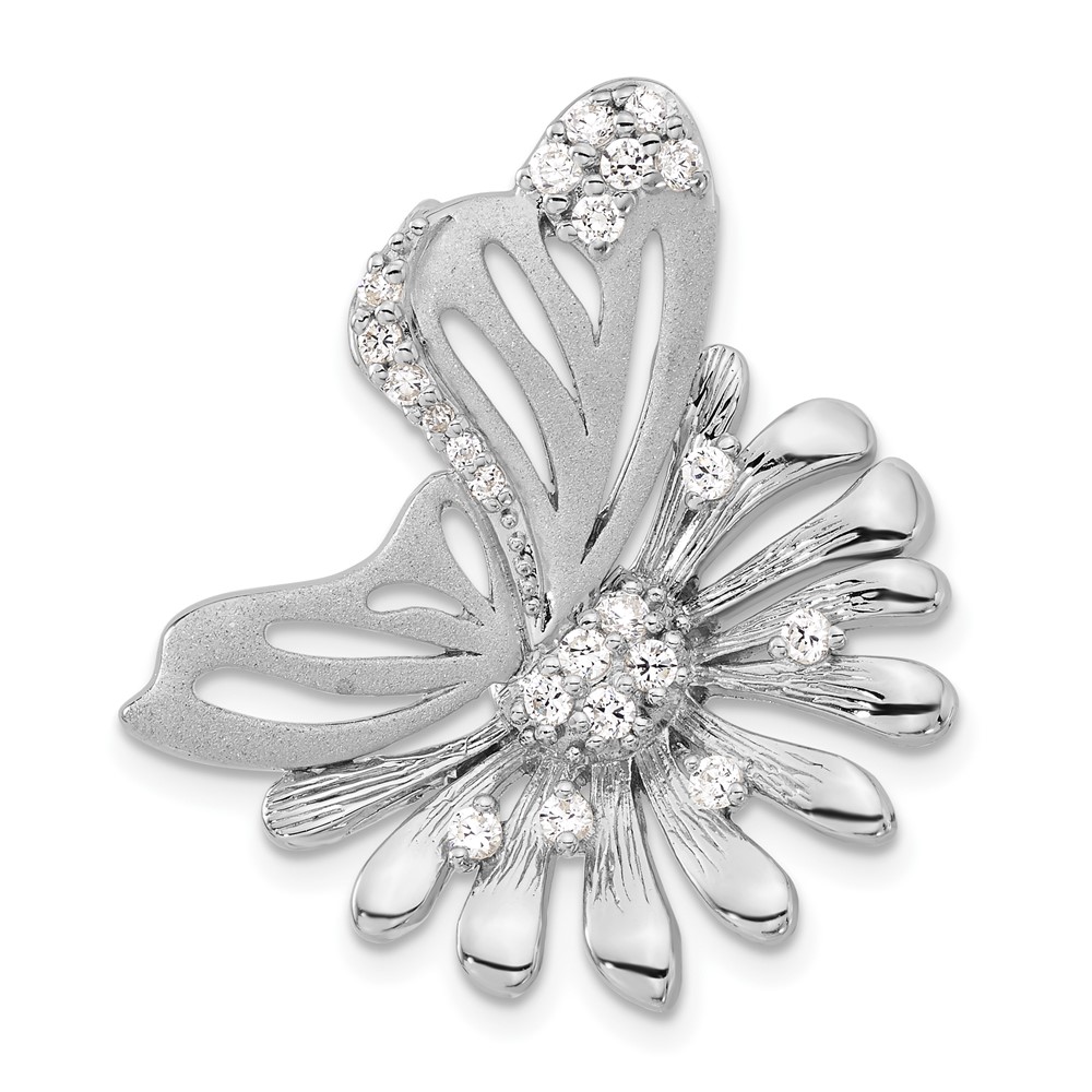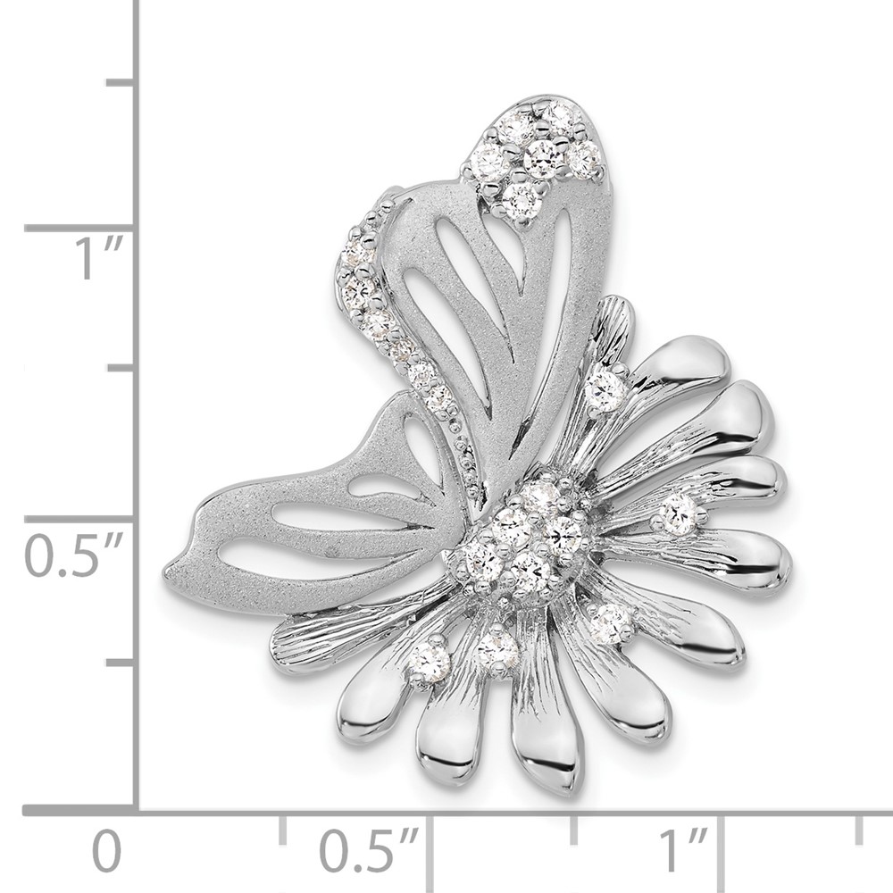 Sterling Silver Polished & Satin CZ Flower Butterfly Slide