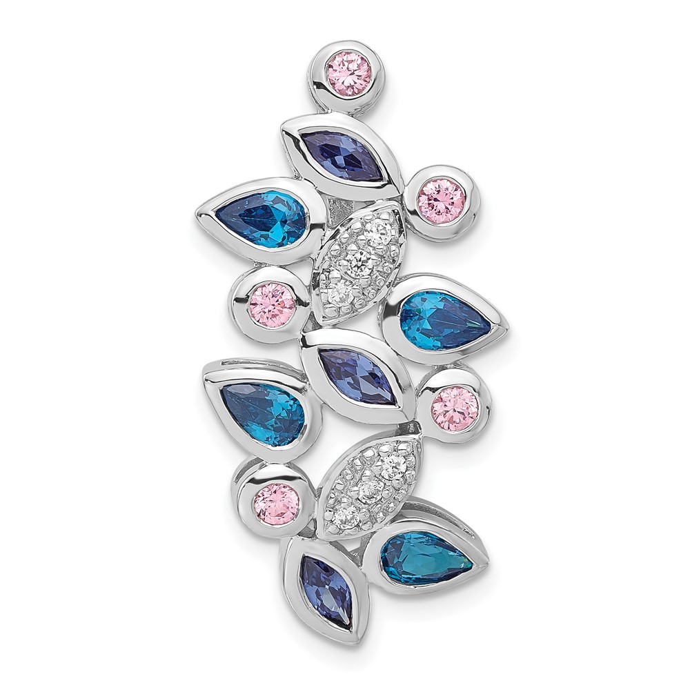Sterling Silver Polished Pink, Blue & Clear CZ Slide Pendant