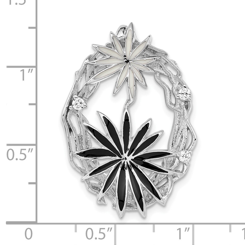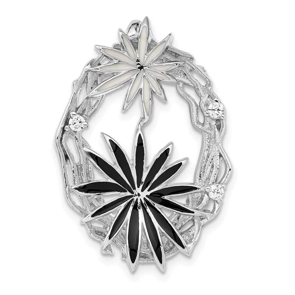 Sterling Silver Polished & Satin Black & White Enamel CZ Slide
