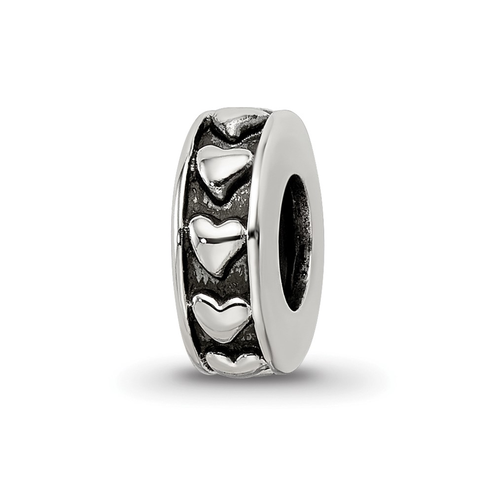 Sterling Silver Reflections Antiqued Hearts Gripper Bead