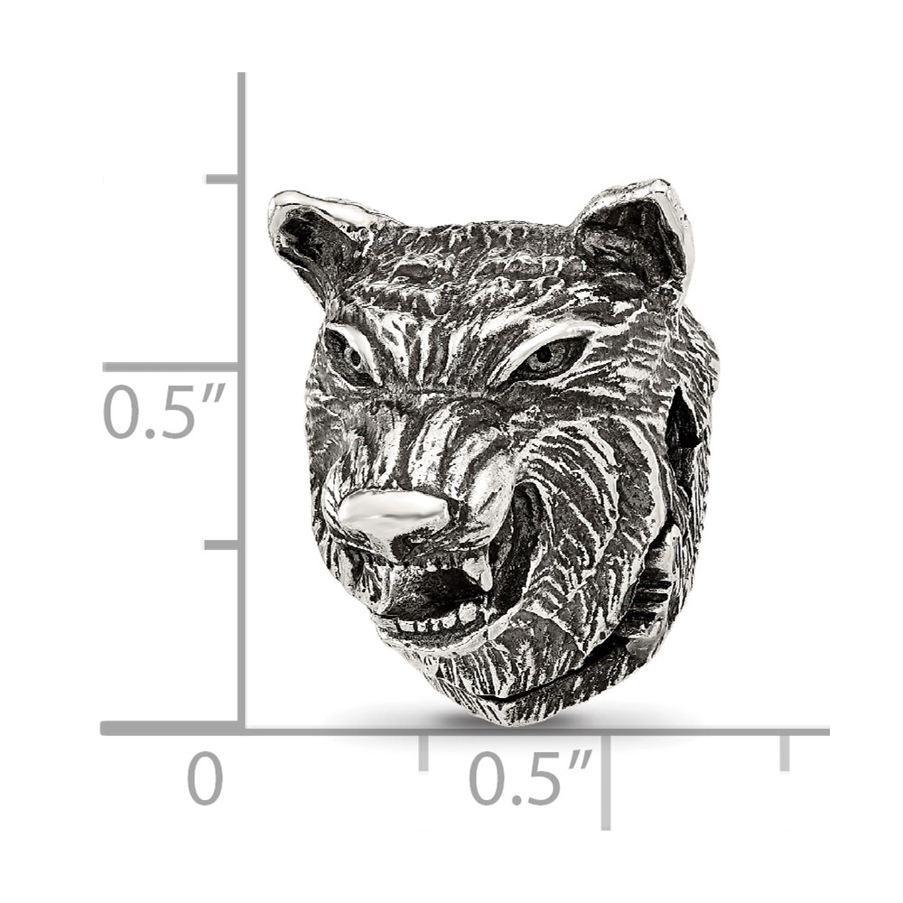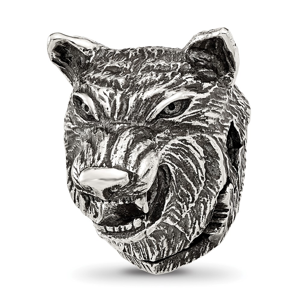 Sterling Silver Reflections Polished Wolf Head Hinged Bead