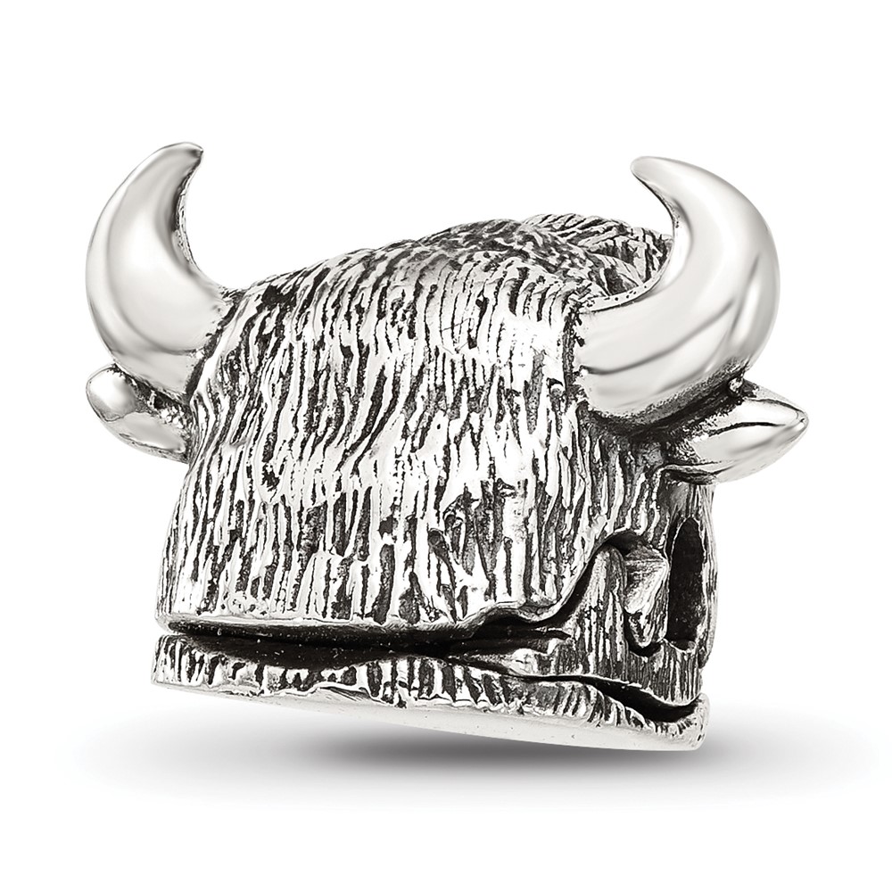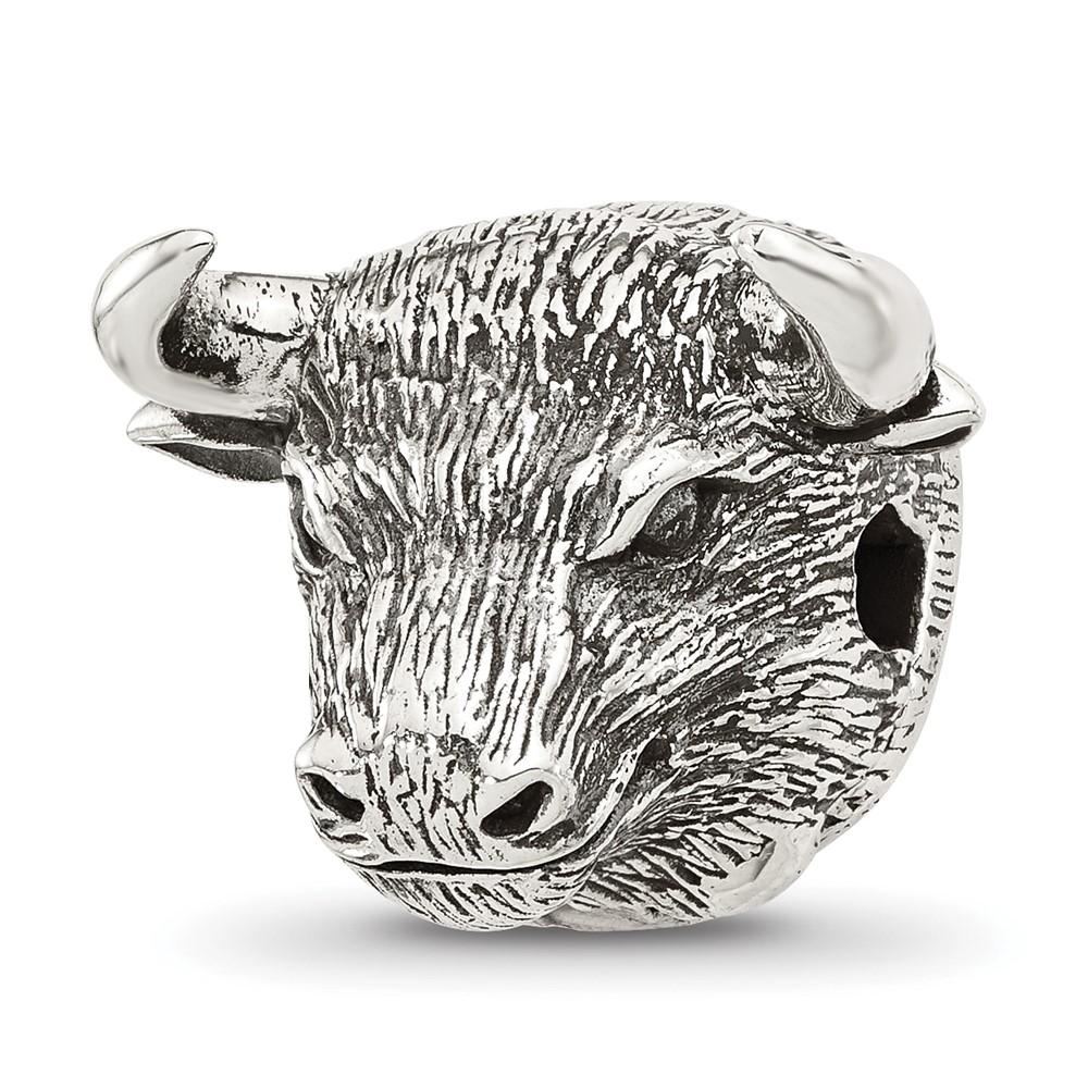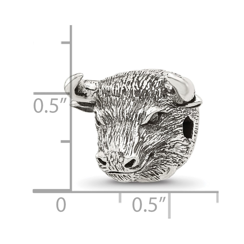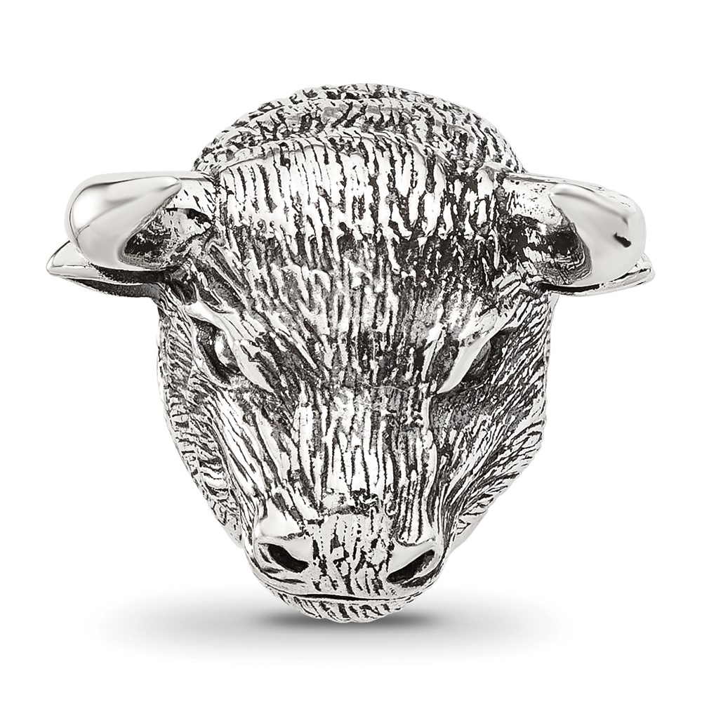 Sterling Silver Reflections Antiqued Fighting Bull Head Hinged Bead