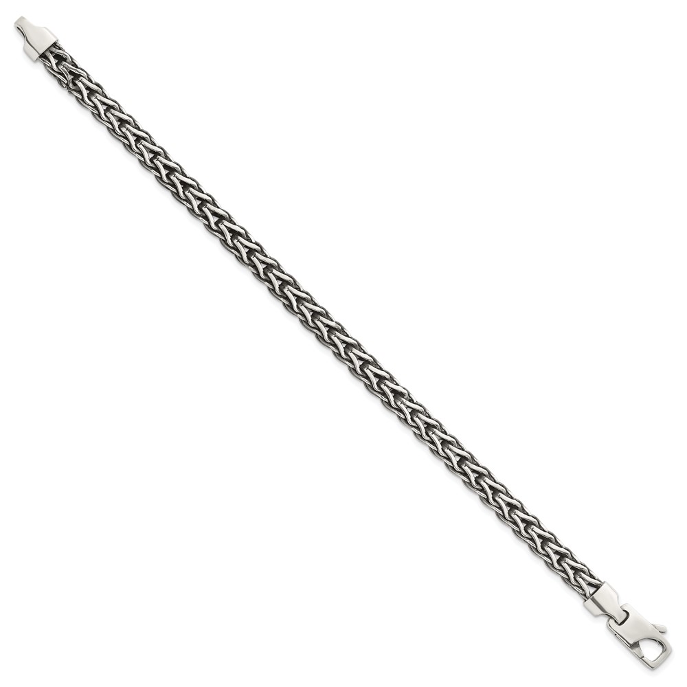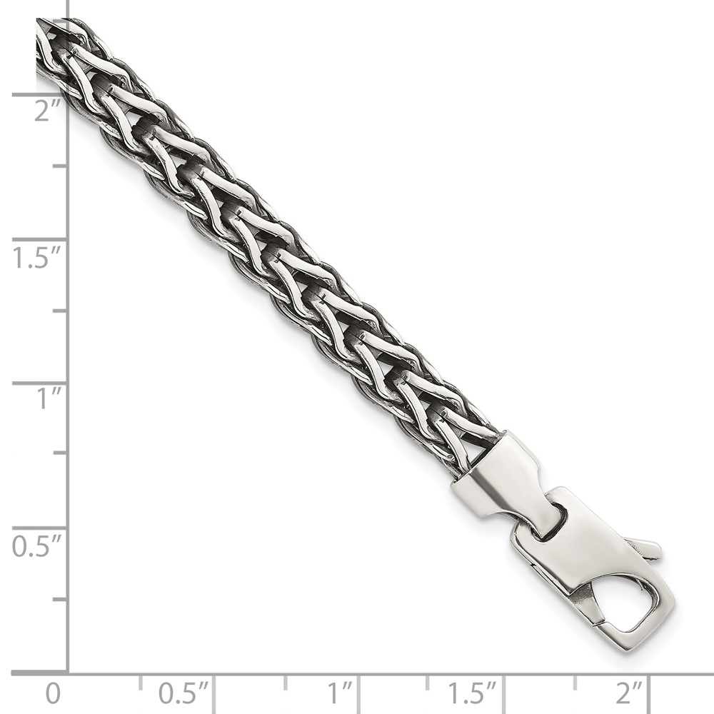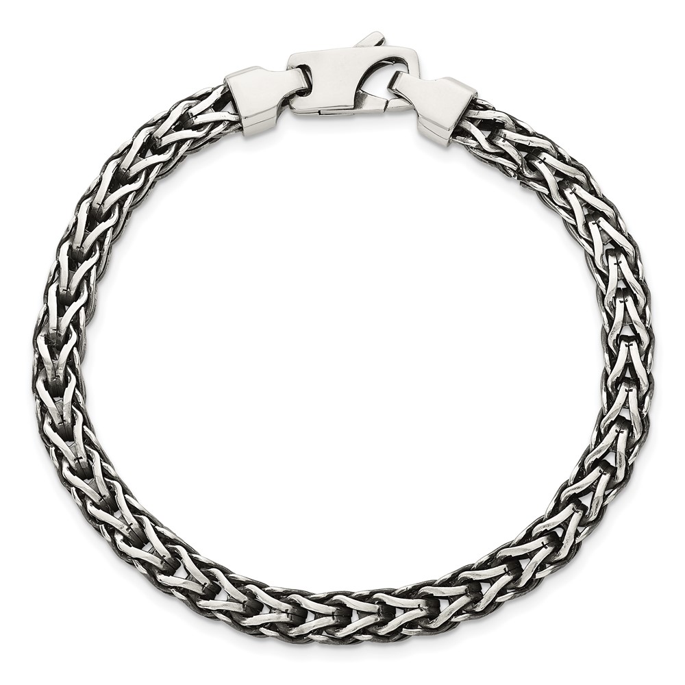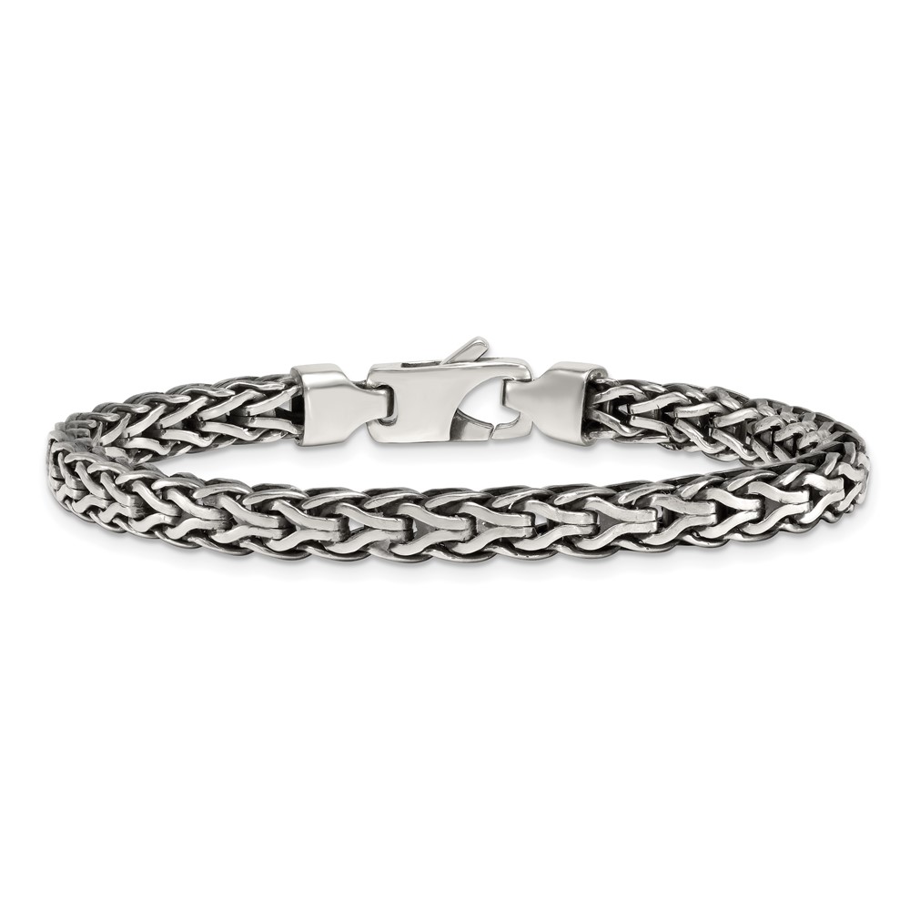 Sterling Silver Antiqued Polished 6mm Fancy Flat Chain 7.75 inch Bracelet