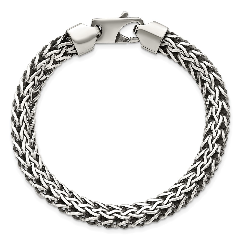 Sterling Silver Antiqued Polished 8.25mm Fancy Chain 7.75 inch Bracelet