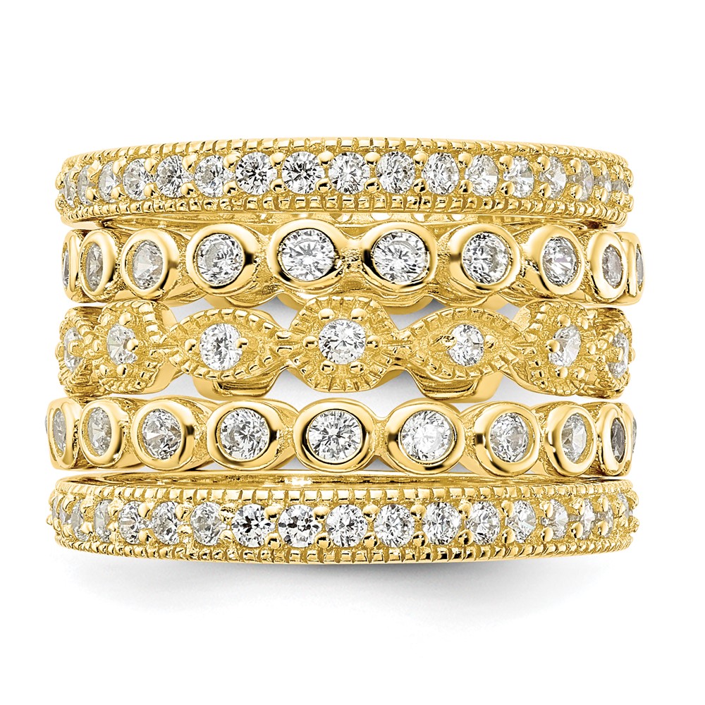 Affordable Expressions Sterling Silver Gold-plated CZ Five Ring Set