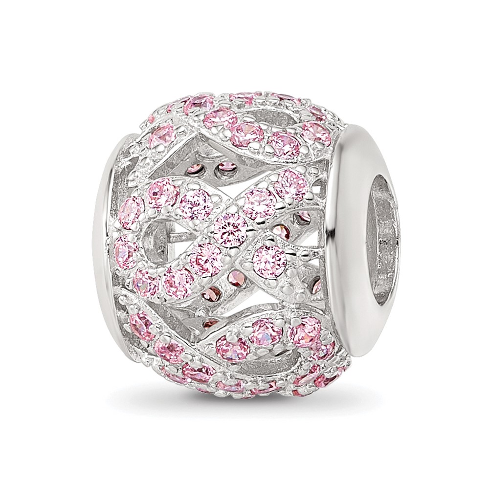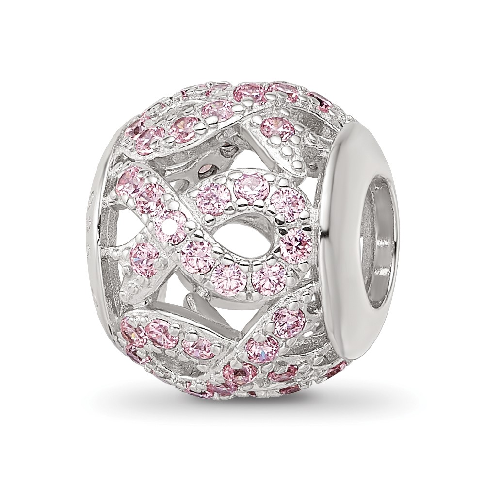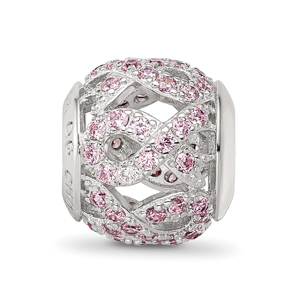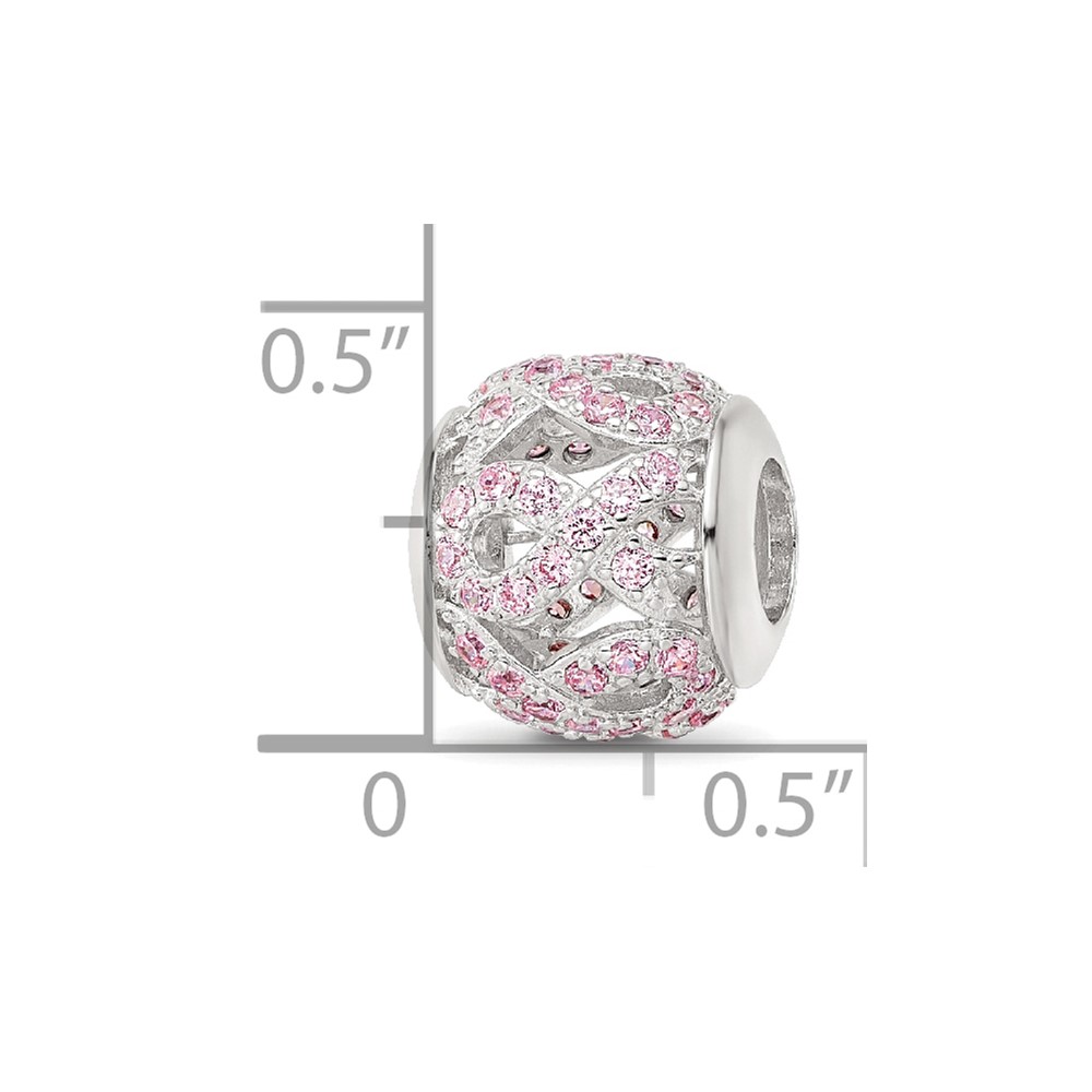 Sterling Silver Reflections Rhod-plated CZ Awareness Ribbon Bead