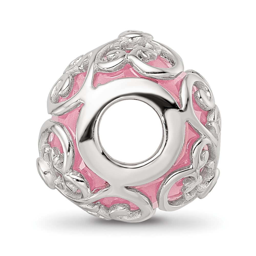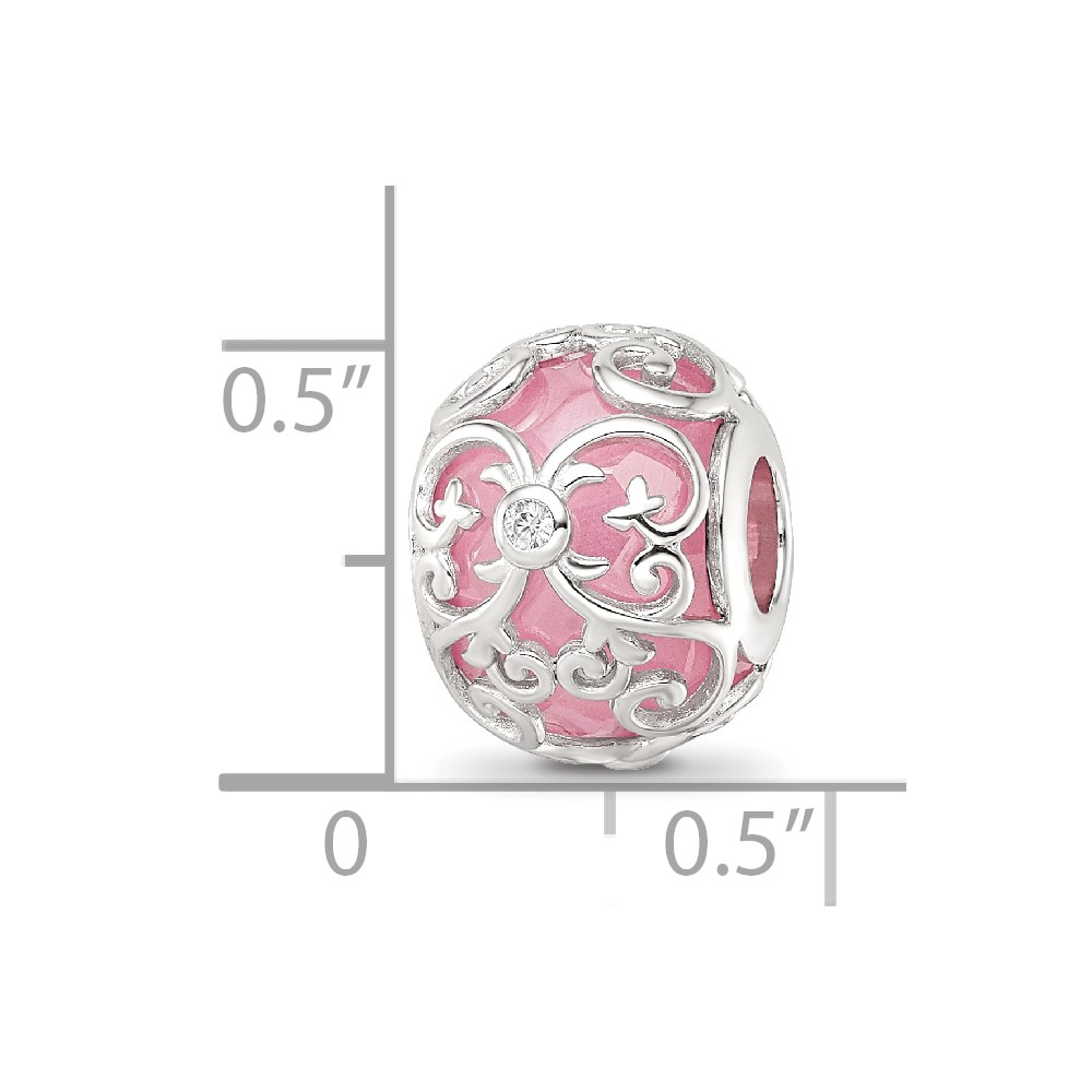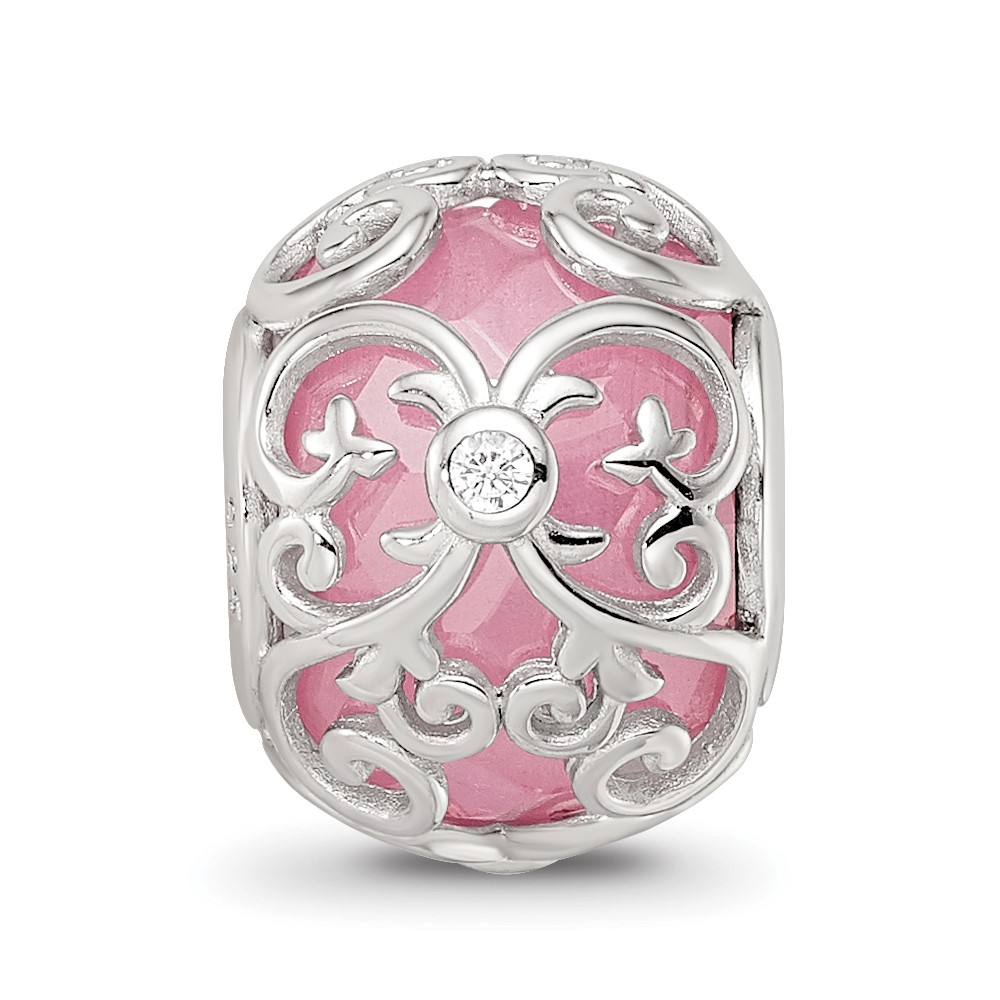 Sterling Silver Reflections Rhodium-plated Pink & White CZ Bead