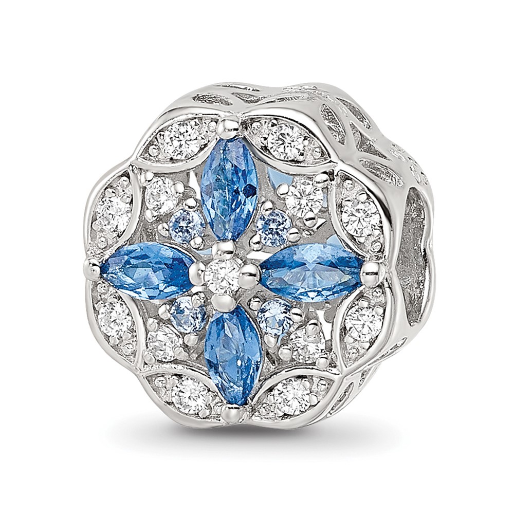 Sterling Silver Reflections Rhodium-plated Blue Spinel & CZ Floral Bead