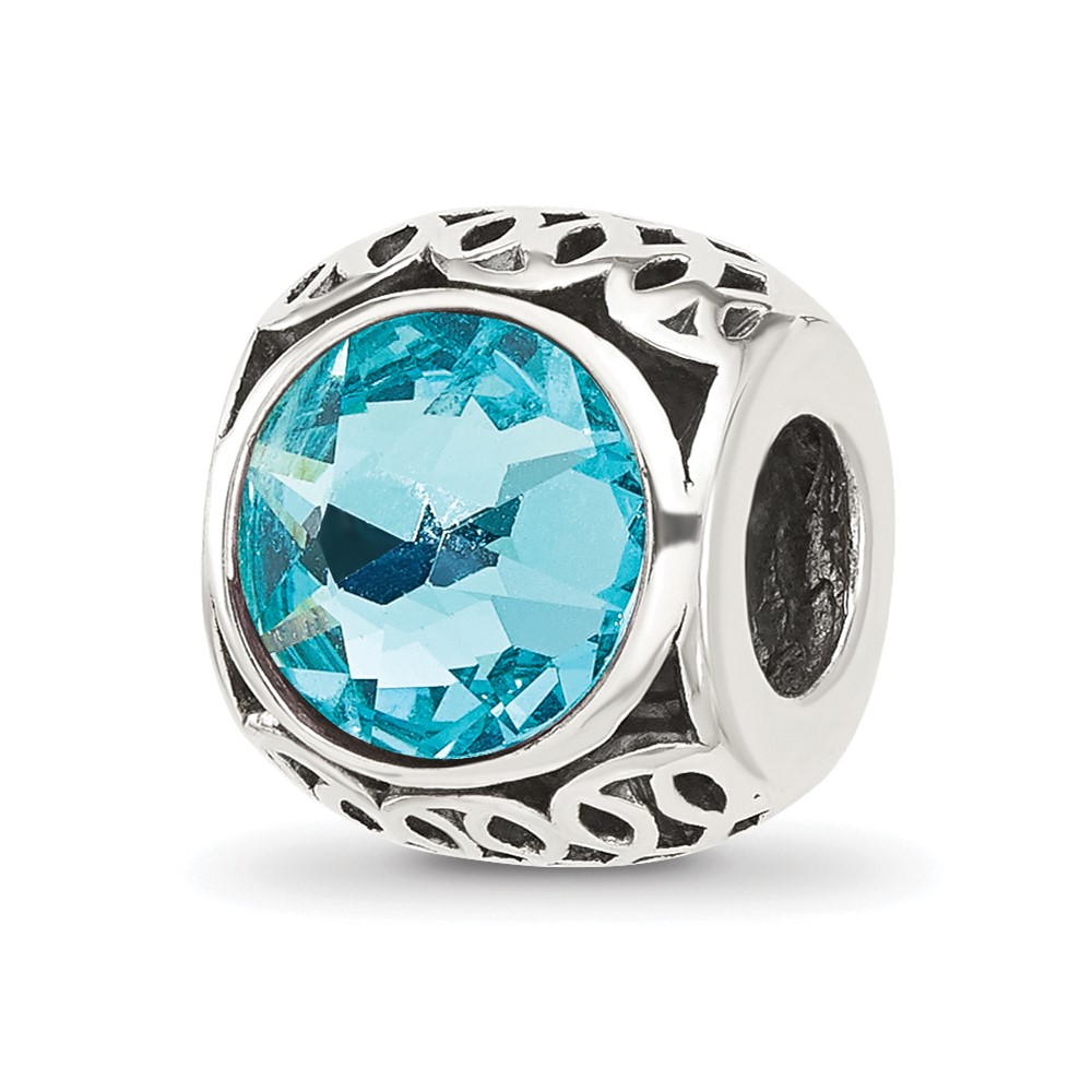 Sterling Silver Reflections Antiqued Light Blue Crystal Bead