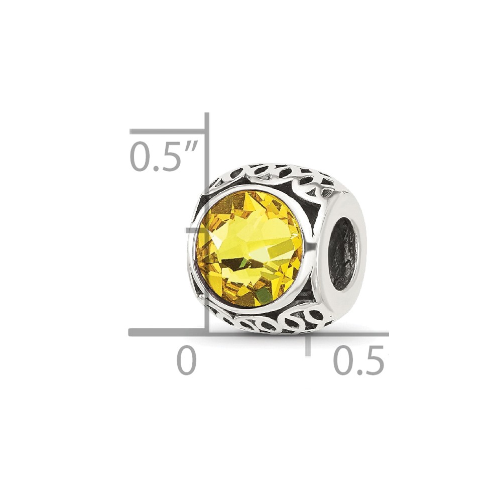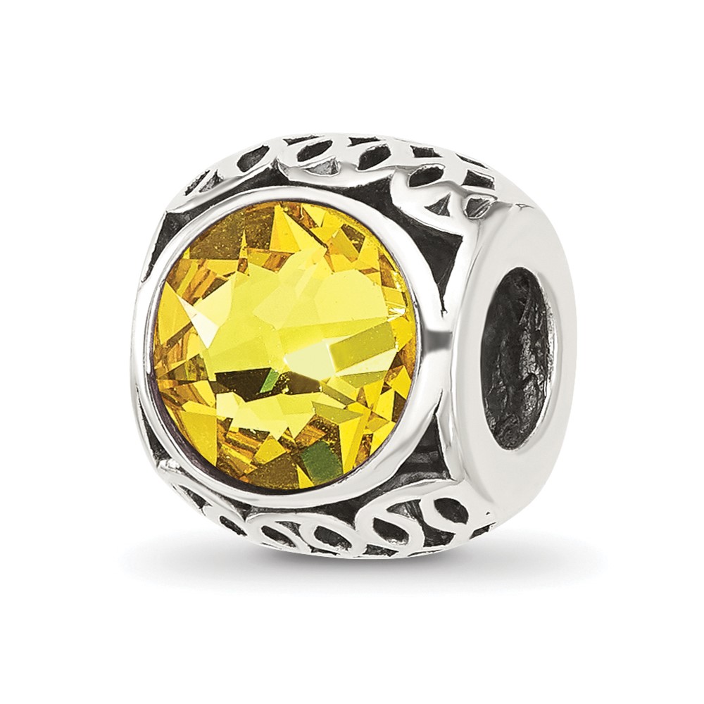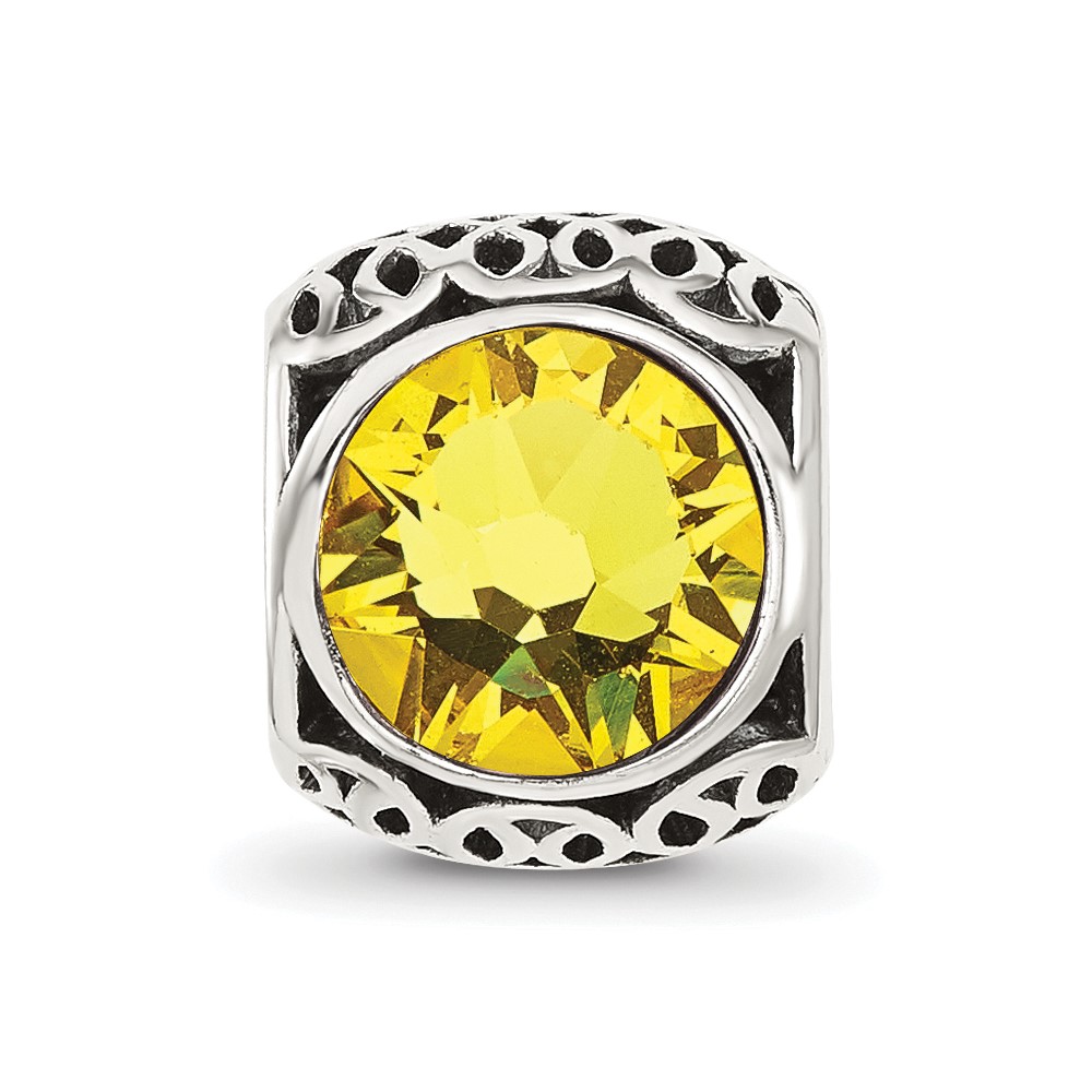 Sterling Silver Reflections Antiqued Yellow Crystal Bead