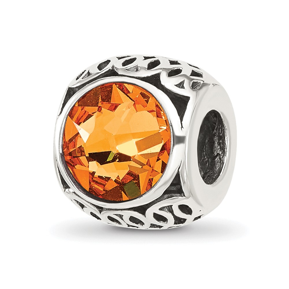 Sterling Silver Reflections Antiqued Orange Crystal Bead