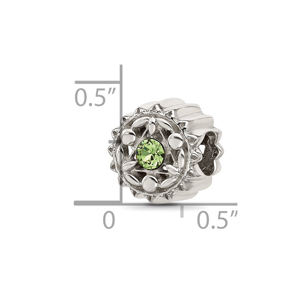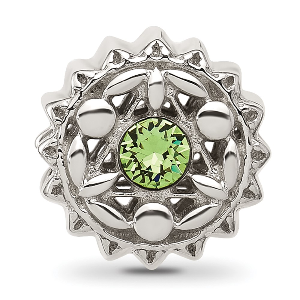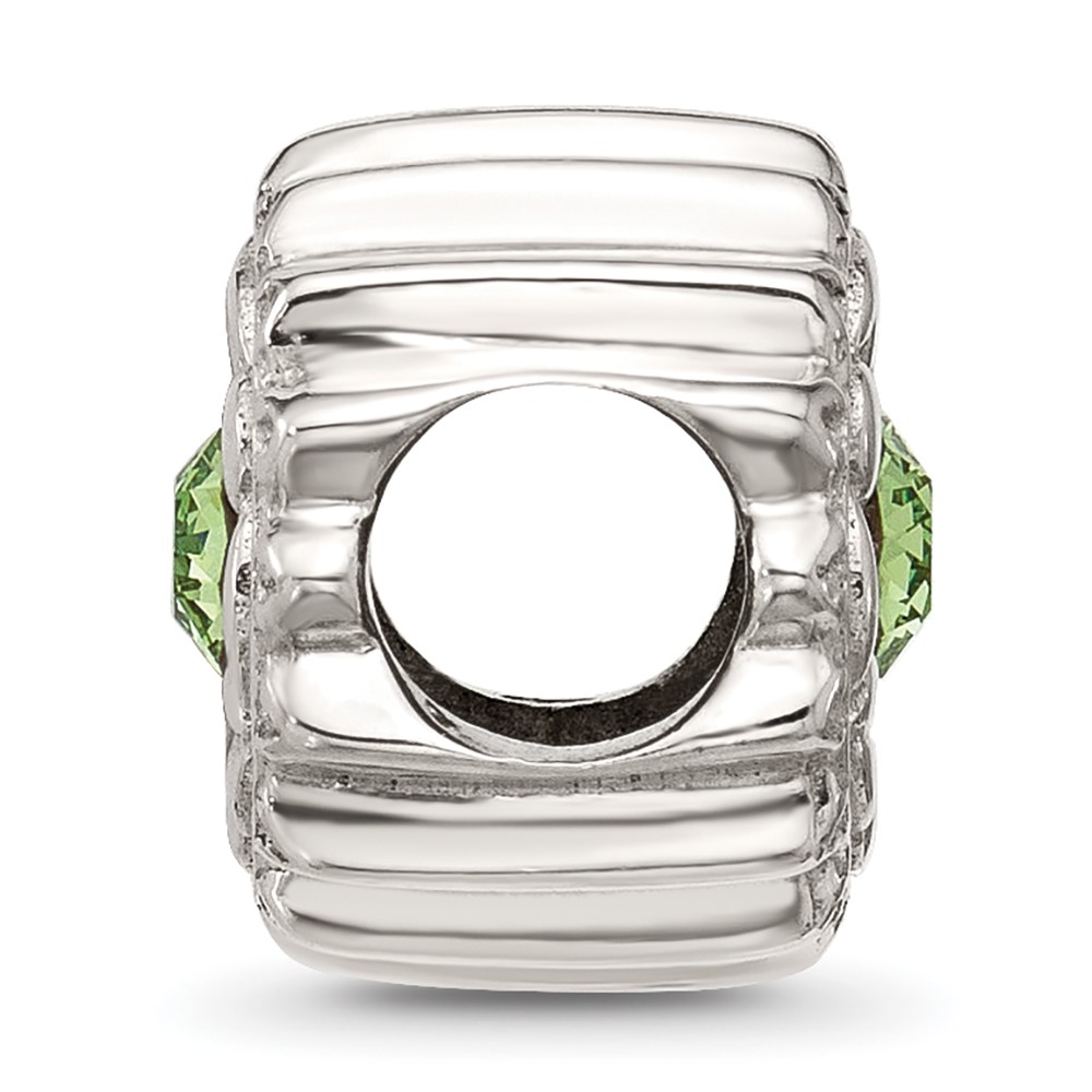 Sterling Silver Brushed And Polished Green Crystal Bead