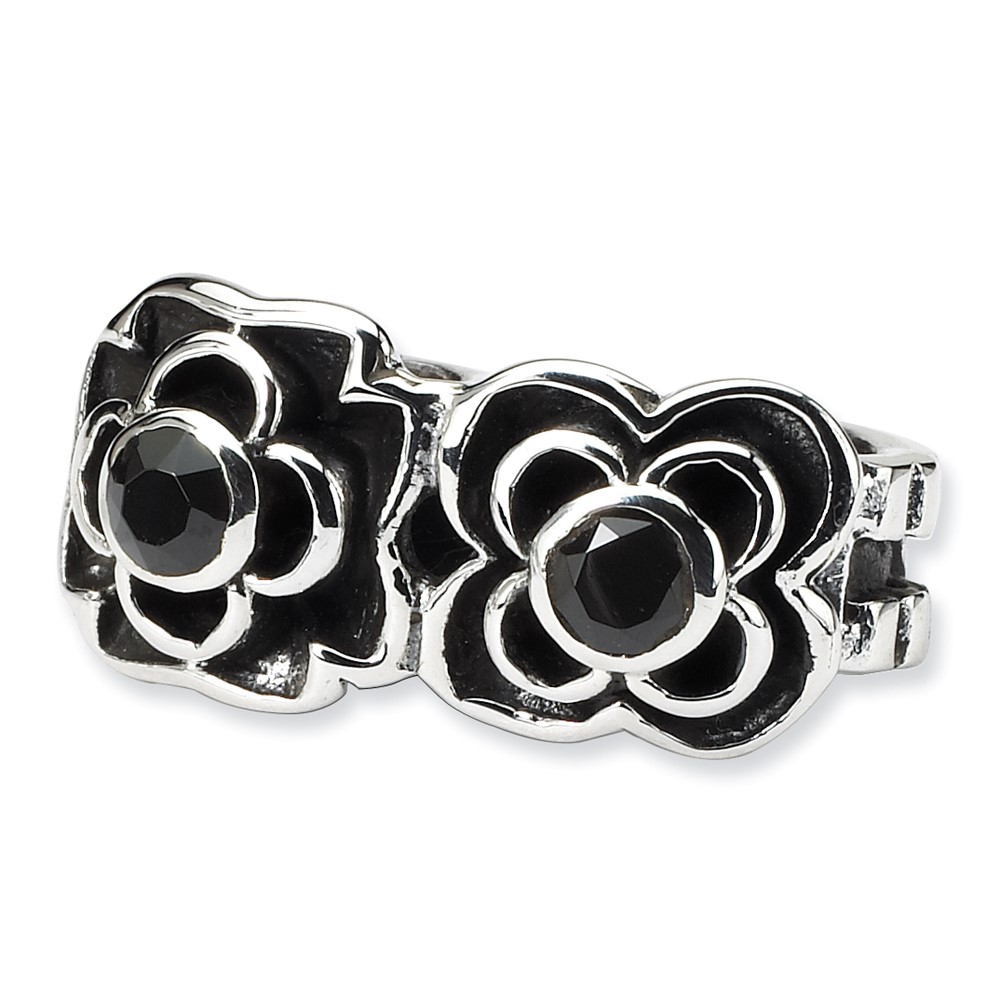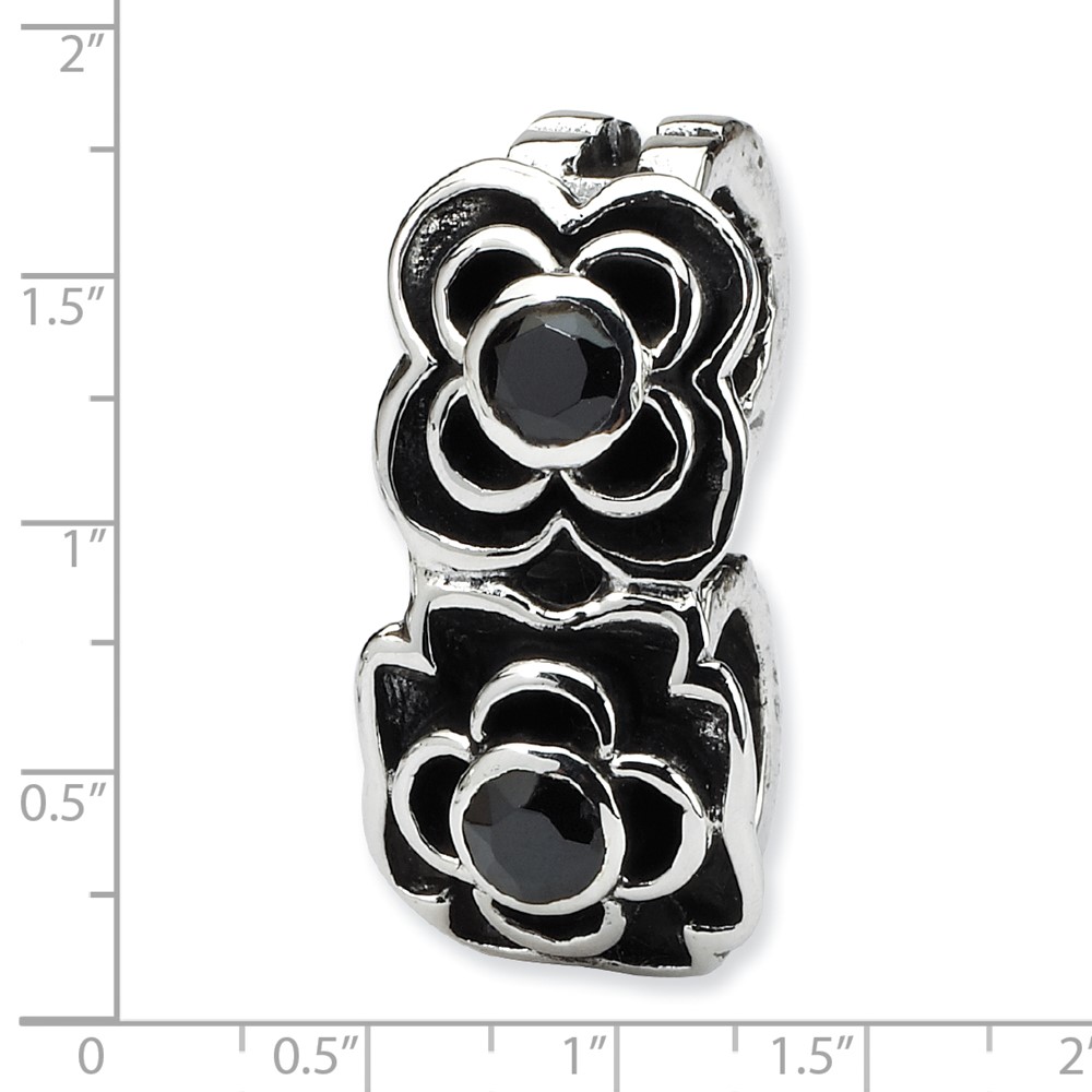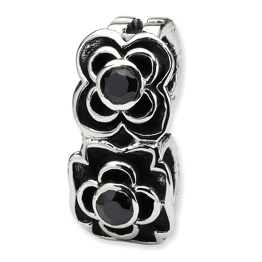 Sterling Silver Reflections Black CZ Connector Bead