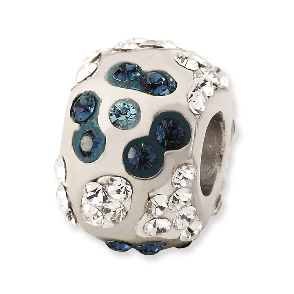 Sterling Silver White & Grayish Blue Crystal Flower Bead