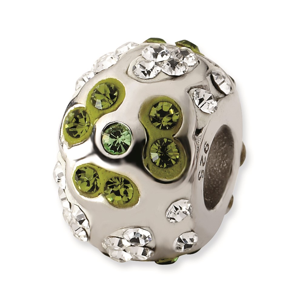 Sterling Silver White & Green Crystal Flower Bead