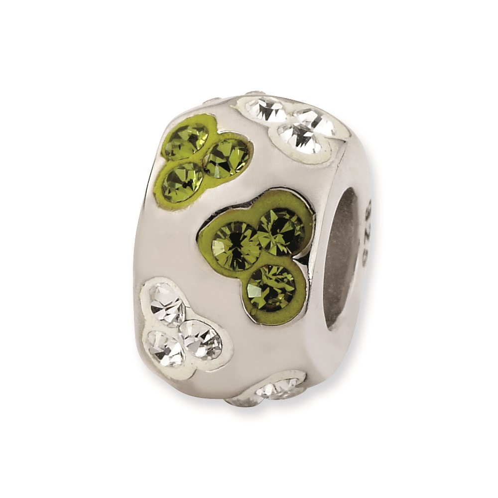 Sterling Silver White & Green Crystal Bead