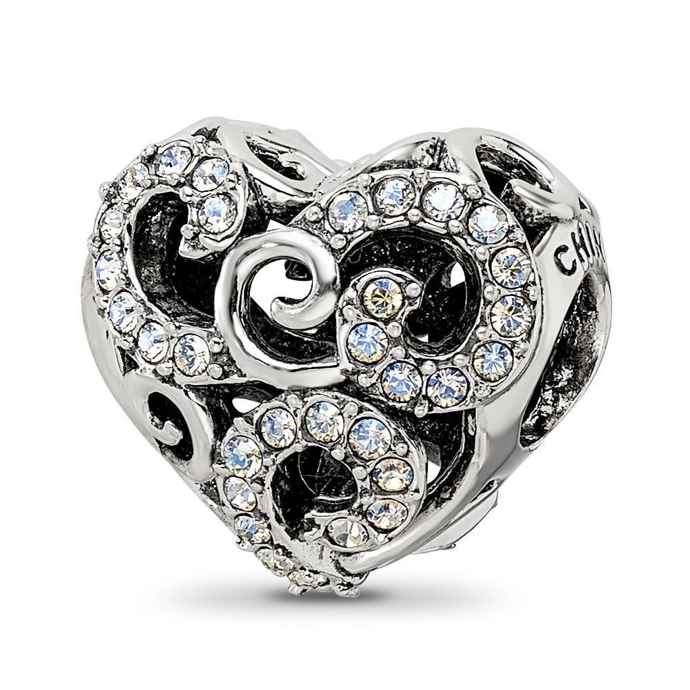 Sterling Silver Reflections Crystal Filigree Heart Bead
