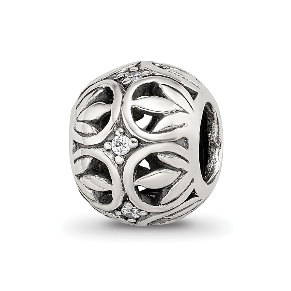 Sterling Silver Reflections CZ Leaf Filigree Bead