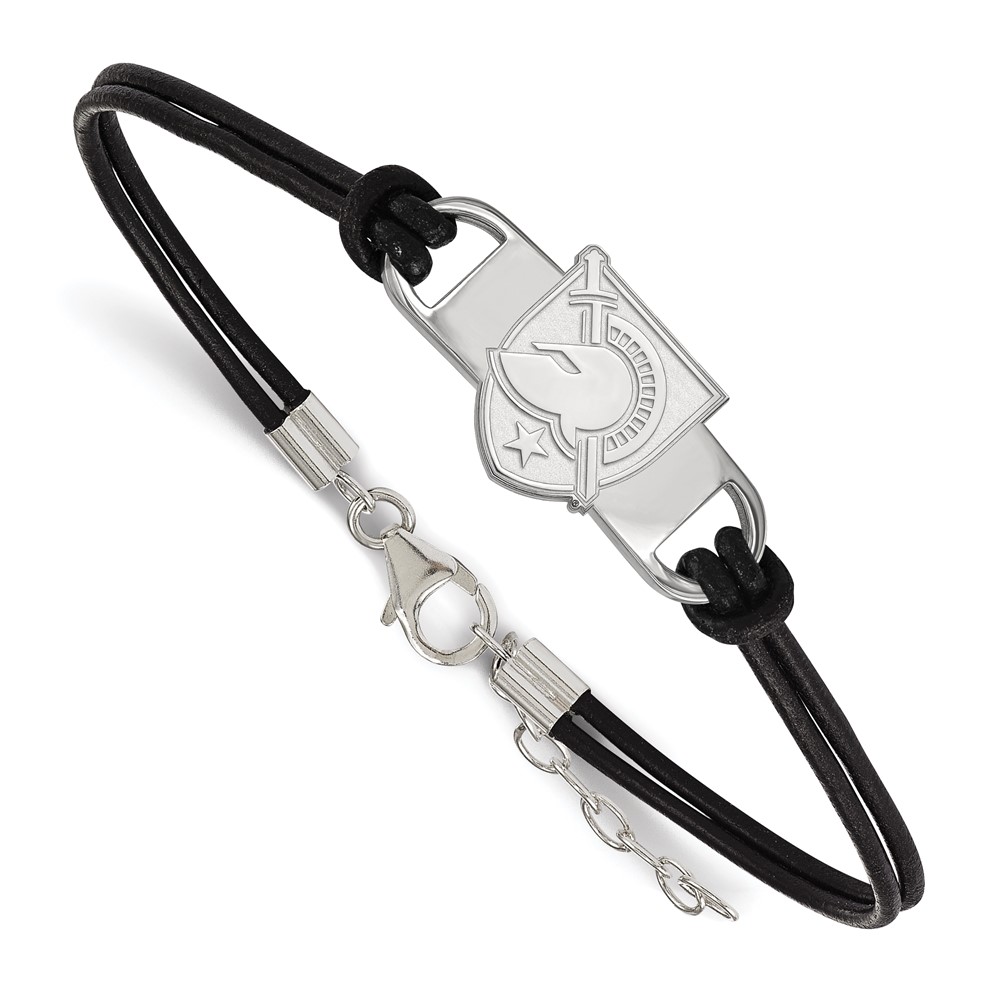 Sterling Silver Rhodium-plated LogoArt U.S. Military Academy Letter A Small Center Black Leather 7 inch Bracelet with Extender