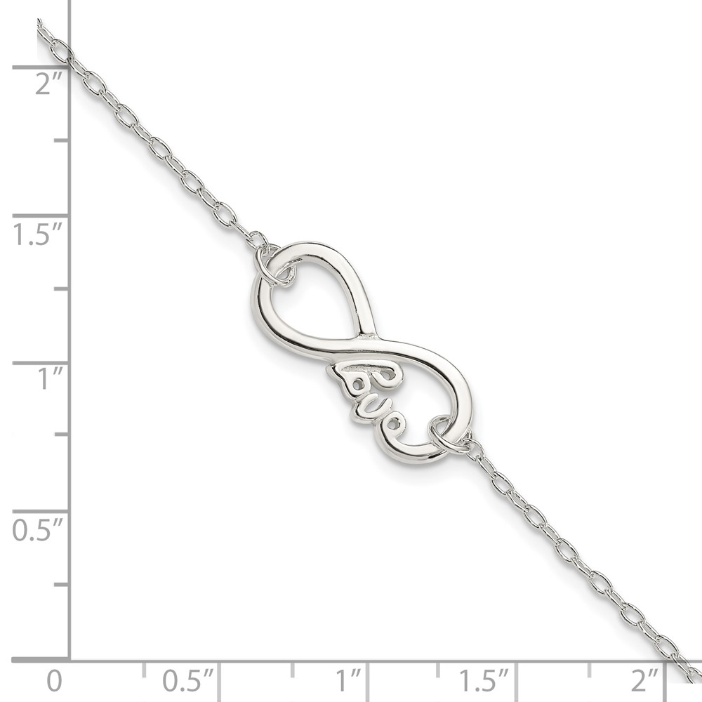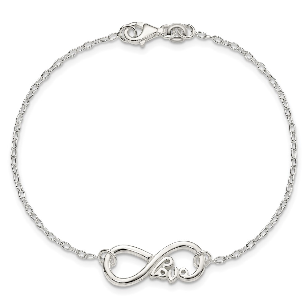 Sterling Silver Polished infinity Sign w/LOVE 7.5 inch Bracelet