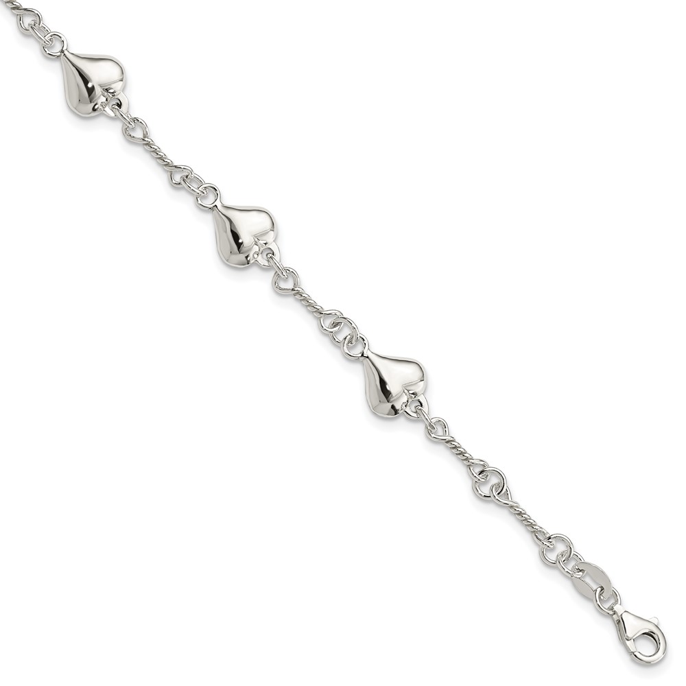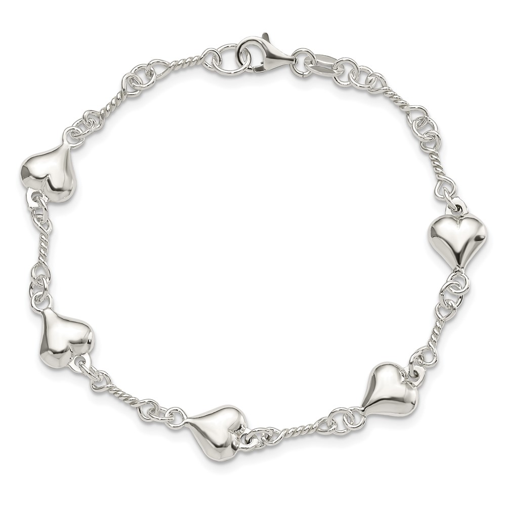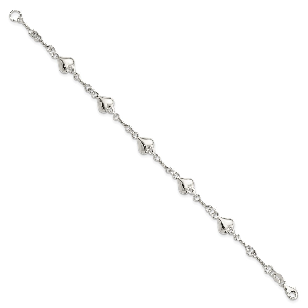 Sterling Silver Polished Heart 7.5in Bracelet