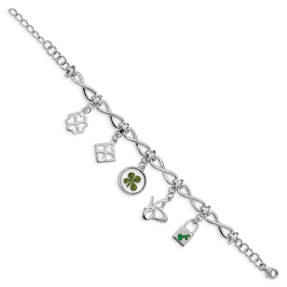 Sterling Silver Plat. Plated Clover Epoxy Enamel w/1.5 ext. Bracelet