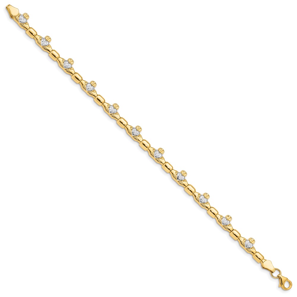 14K with White Rhodium Diamond-cut Claddagh Polished Link 7.25 inch Bracelet