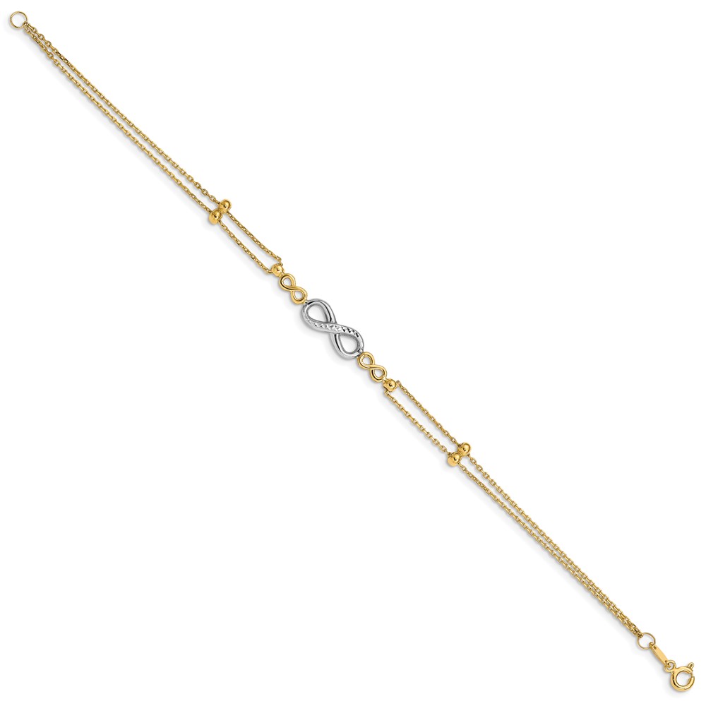 14K Two-tone Polished Diamond-cut Infinity Symbol 2-Strand 7.5 inch Bracelet