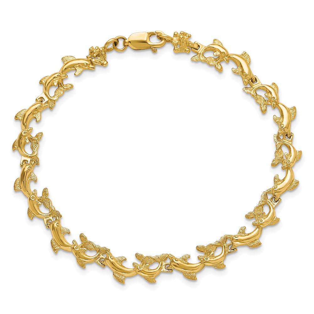 14K Polished Heart and Diamond-cut Beads 6.5 inch Bracelet Plus 1 inch Extension