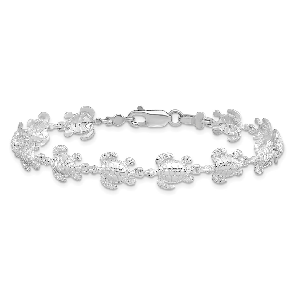 De-Ani Sterling Silver Rhodium-plated Polished Sea Turtle 7.5 inch Bracelet