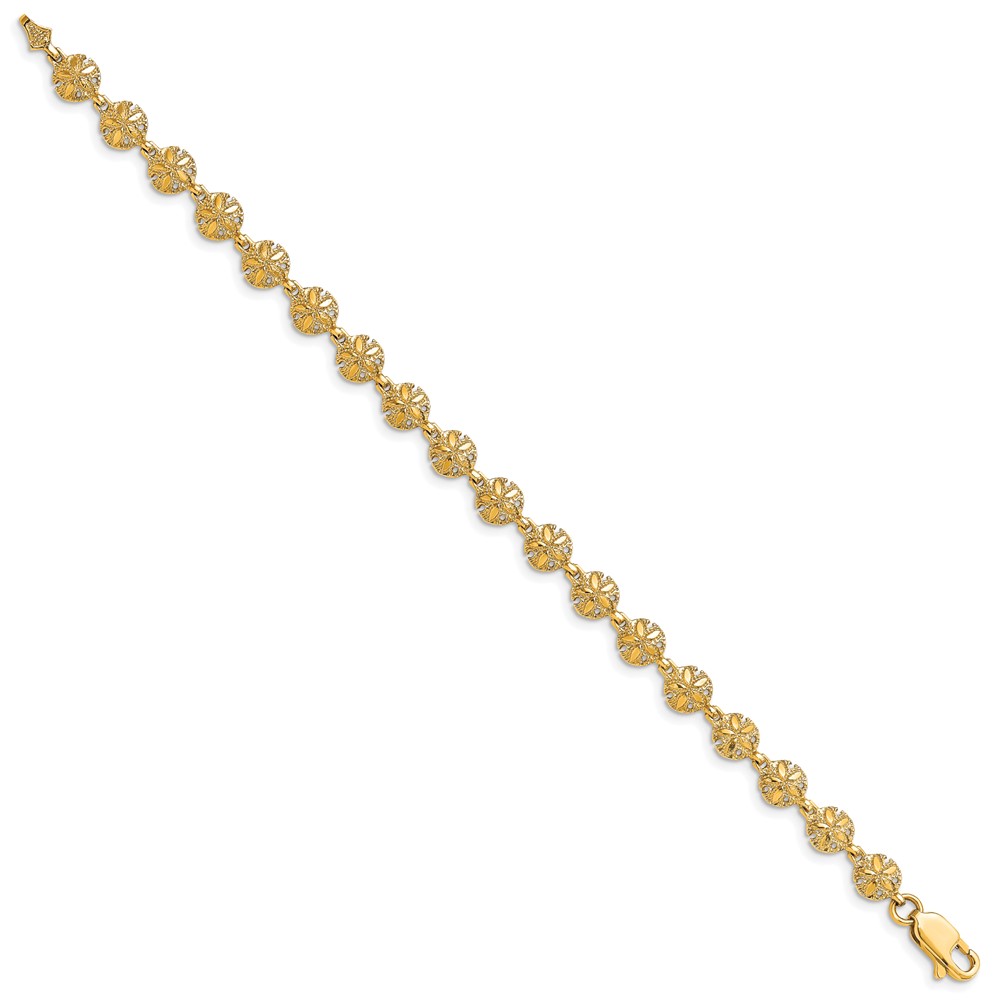 14K Polished and Textured Mini Sand Dollar 7 inch Bracelet