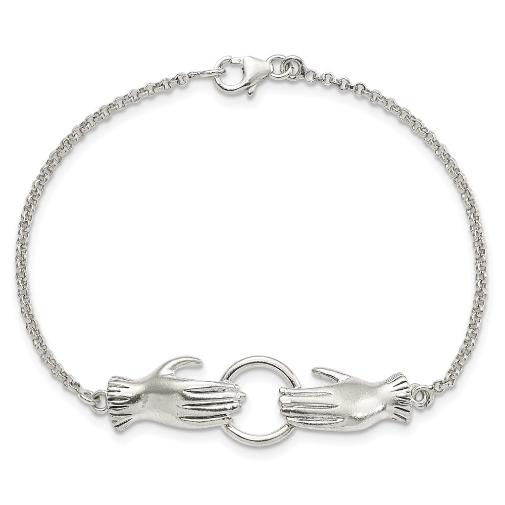 Sterling Silver Polished Hands Holding Ring Bracelet