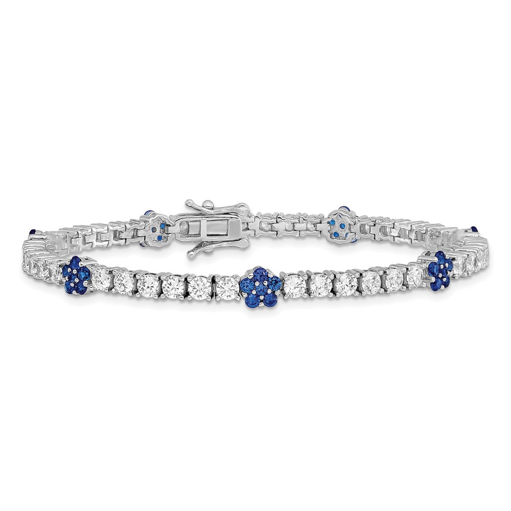 Sterling Silver Rhodium-plated Cr Blue Spinel & CZ Flower 7in Bracelet