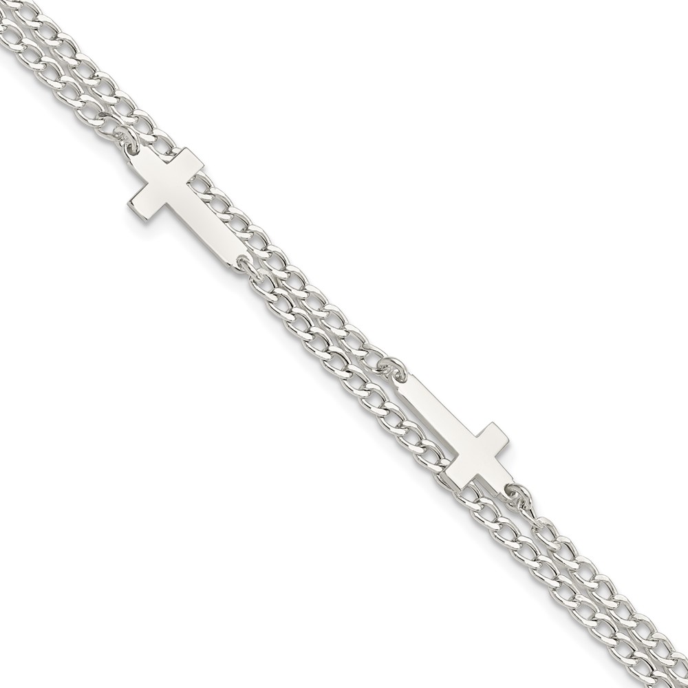 Sterling Silver Double Cross 2-Strand w/1in ext Bracelet