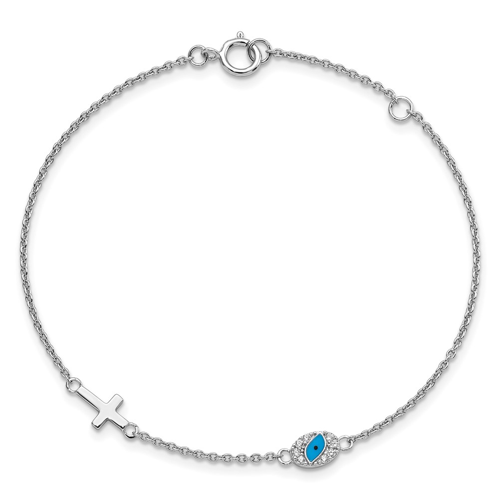 Sterling Silver RH CZ Enamel Cross w/Eye 6.5in w/1in ext Bracelet