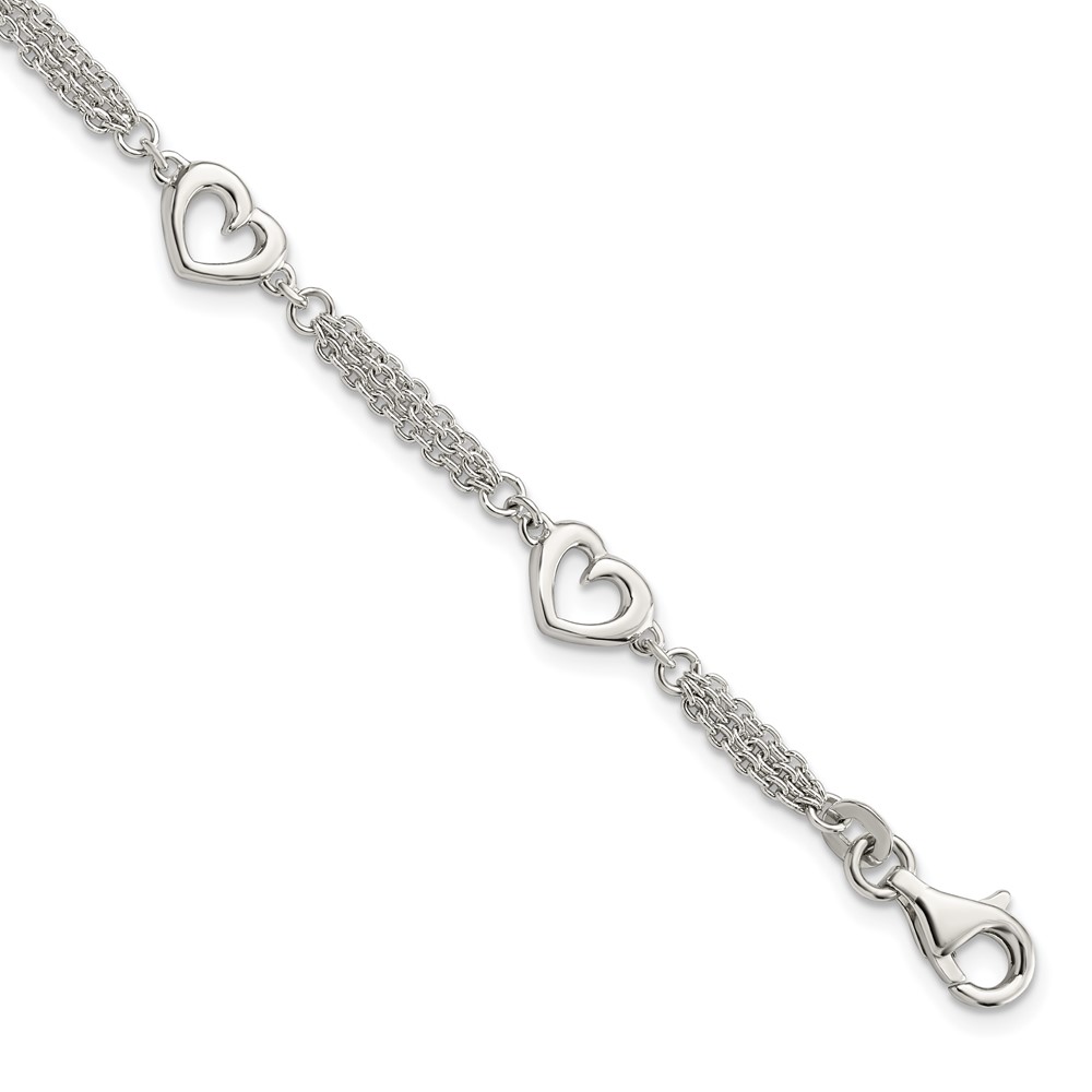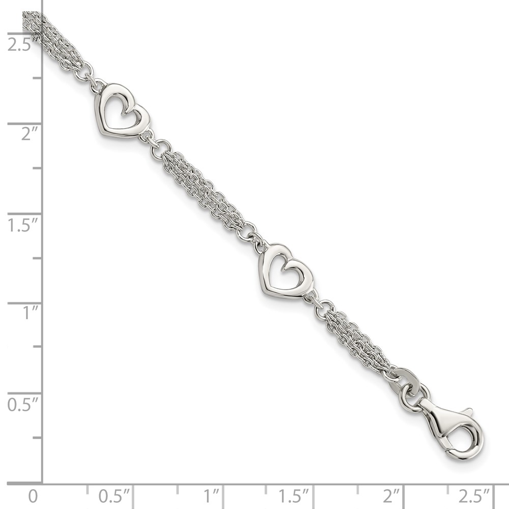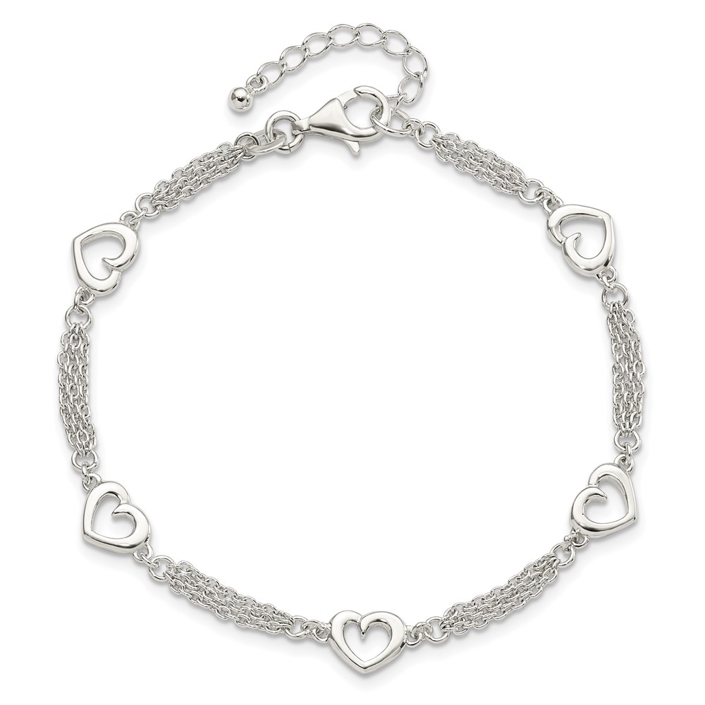 Sterling Silver Polished Hearts 7.5in w/1.0 in ext Bracelet
