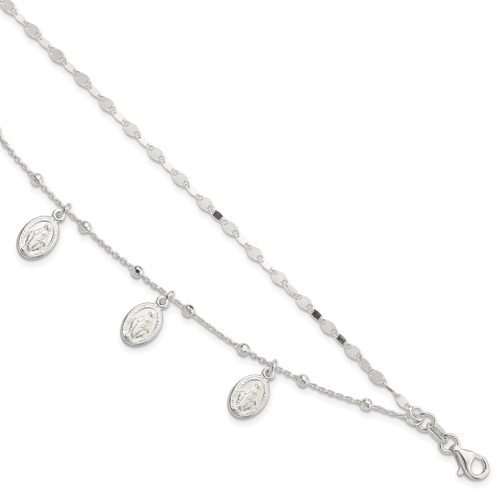 Sterling Silver Dbl Miraculous Medal w/1 in ext. Bracelet