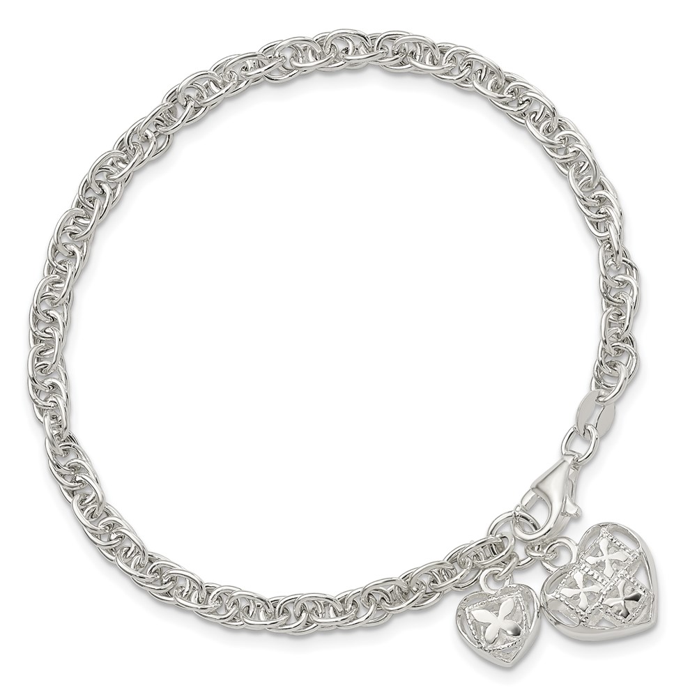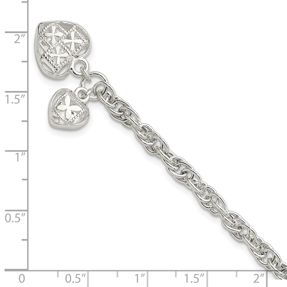 Sterling Silver Polished Dbl Heart Dangle Bracelet