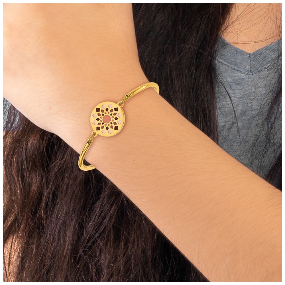 Chisel Stainless Steel Polished Yellow IP-plated Enameled Flower 5.5 inch Bangle Bracelet with 2 inch Extension