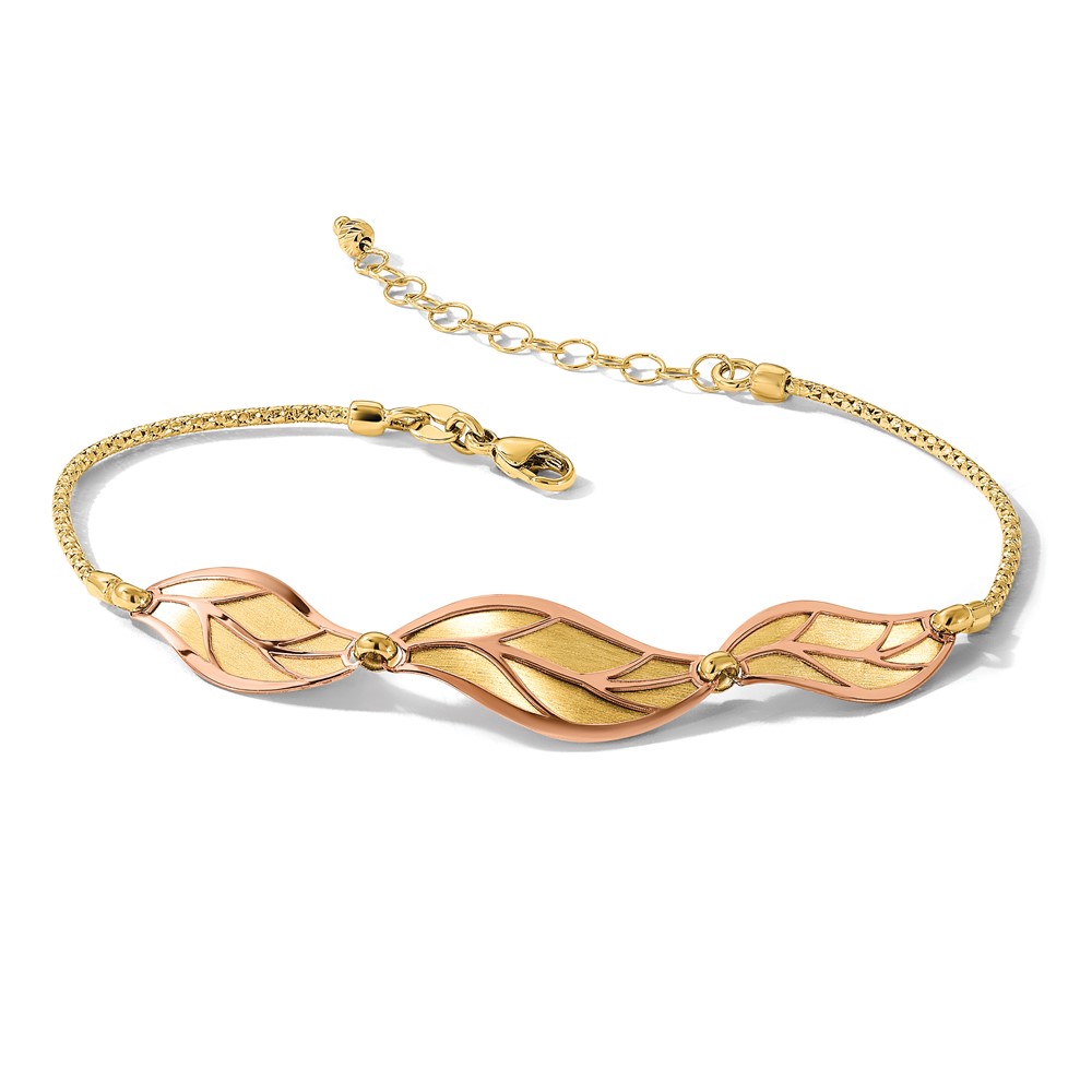 14K Two-tone Rose and Yellow Polished / Brushed Leaf w/ 1.5in ext. Bracelet
