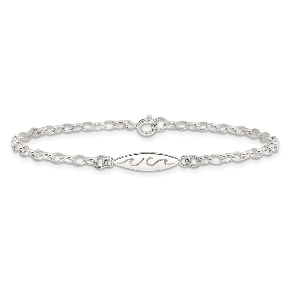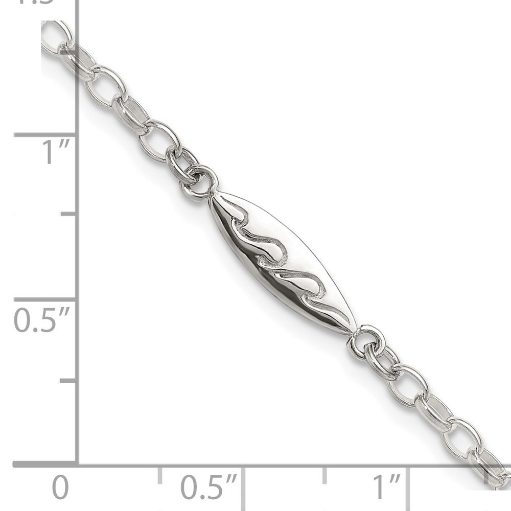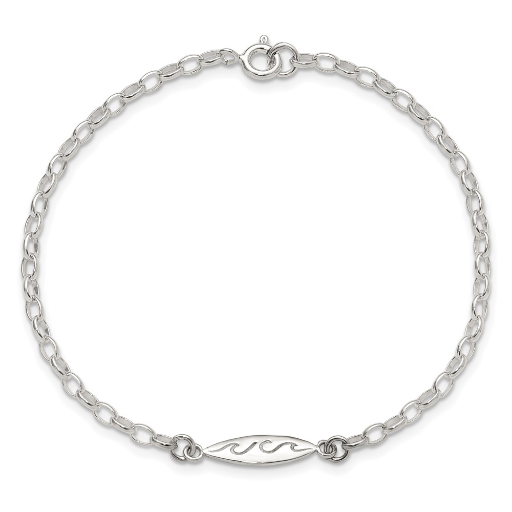 Sterling Silver Antiqued Polished Etched Waves Surf Board Bracelet